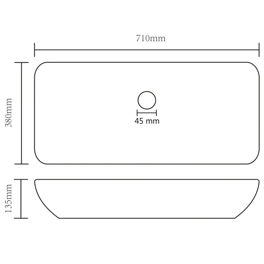 This rectangular wash basin, made of premium ceramic, is a perfect stylish addition to any bathroom, washroom or powder room. Its matt surface and luxury design bring a modern yet elegant look.The artistic ceramic basin is more than just a practical vessel for everyday use. It is an adornment for your living space! This sink can be put on top of bathroom console and also can be used in the cosmetic room, garage, kitchen or workplace. It definitely suits any interior style and is quite easy to clean.The drain hole is 1.8 " in diameter. Please note: Drain pipe is not included in the delivery.