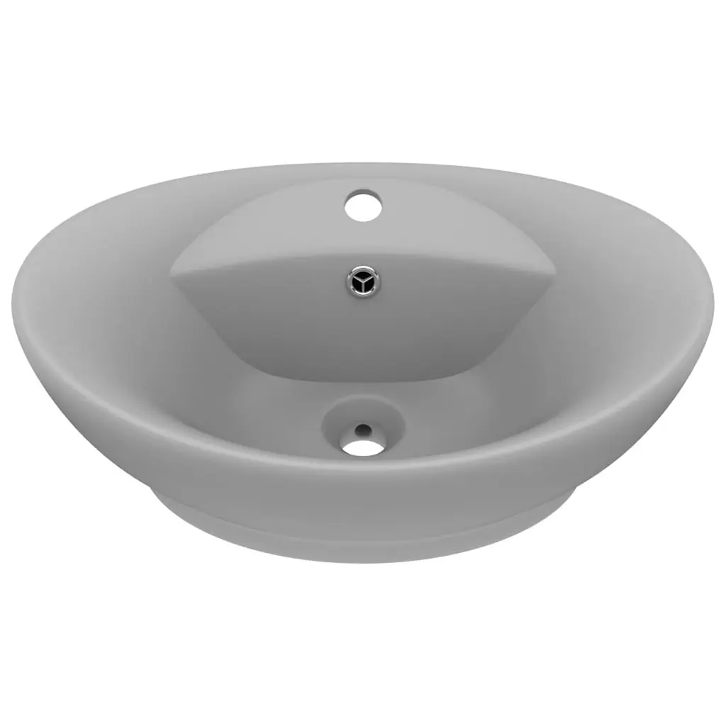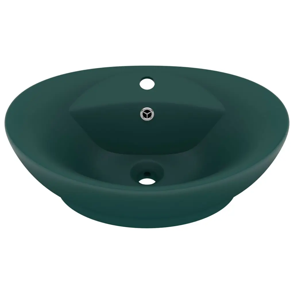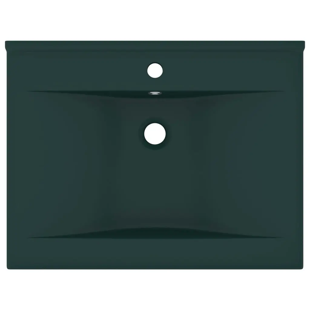 Vidaxl Luxury Basin With Faucet Hole Matt Dark Green 23.6x18.1" Ceramic