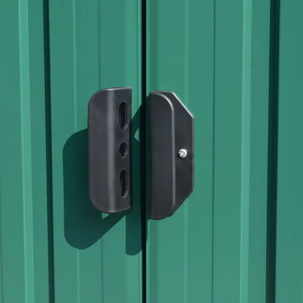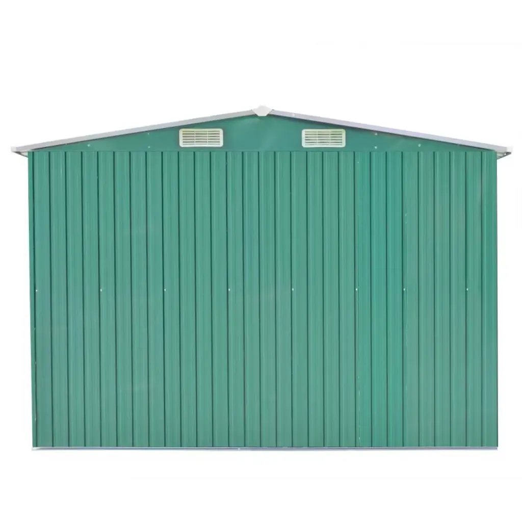 This spacious metal garden shed is designed for durability and practicality, providing a secure and organized storage solution for your outdoor tools and equipment. Built from galvanized, powder-coated steel, it stands up to the elements and offers a modern, industrial look that complements any backyard, patio, or garage space. Available in both green and gray finishes, you can choose the color that best fits your outdoor decor.Key Features• Sturdy galvanized steel construction for long-lasting outdoor use• Powder-coated finish for enhanced corrosion resistance and a sleek appearance• Spacious interior (101.2" x 154.3" x 71.3") for storing garden tools, equipment, and more• Sliding door design for easy access and efficient organization• Rectangular shape with a peaked roof and integrated vents for airflowAvailable Options• Colors: Green, Gray• Size: 101.2" x 154.3" x 71.3"Benefits• Keeps your patio, backyard, or garage tidy by providing ample storage space• Weather-resistant materials ensure your belongings stay protected year-round• Easy-to-assemble with included hardware and clear instructionsAdditional Details• Weight: Approximately 174–178 lbs (varies by color)• Includes assembly hardware• SKU: 46309 (Green), 46310 (Gray)This metal garden shed is the perfect addition to any outdoor space, offering both style and functionality to help you keep your tools and equipment organized and protected.