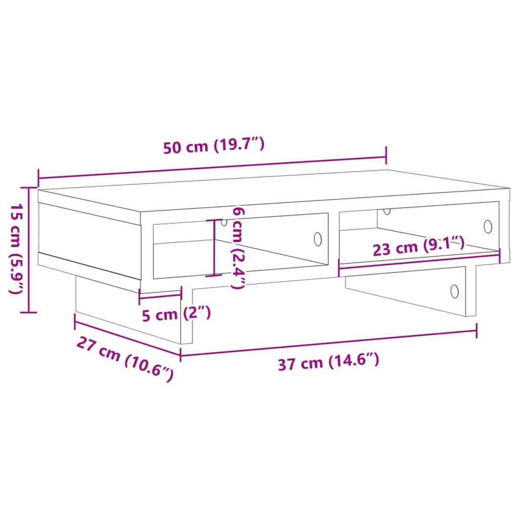 Enhance your workspace with this practical monitor stand for better viewing comfort and style.Stable and durable material: Engineered wood is a durable and stable material with a smooth surface that is warping, and splitting, making it a reliable choice for various projects.Ample storage space: The screen stand includes 2 compartments, offering extensive storage options for all your office essentials and helping to keep your workspace organized and clutter-free.Easy maintenance: Thanks to its smooth surface, the monitor platform is easy to clean with a damp cloth and requires less maintenance.