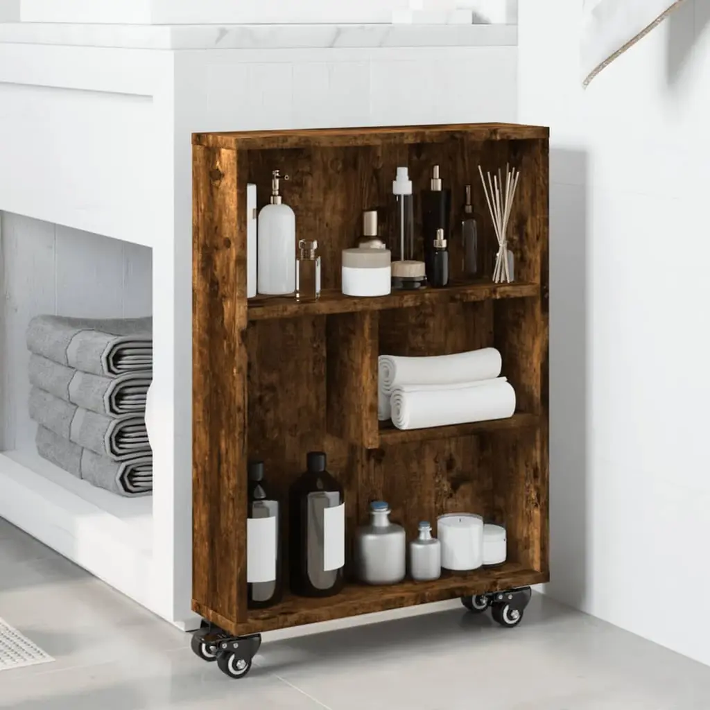 Vidaxl Narrow Storage Cart Smoked Oak Engineered Wood 18.9 X 5.1 X 26.8 In