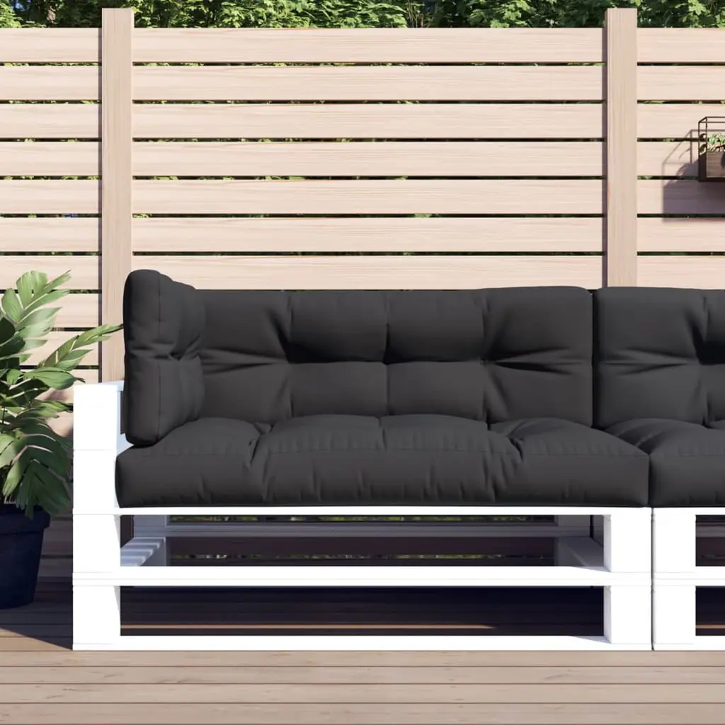 This 3-Piece Black Fabric Pallet Cushion Set merges comfort and style, delivering essential support for pallet setups and outdoor seating. Crafted from a smooth, water-resistant polyester fabric, they aim to boost the look of any area while also promising long-lasting comfort for your guests and family. Comfortable Filling: The cushions are filled with lightweight and durable polyester fiberfill for a soft seat that stays comfy over time. Ideal for both lounging and more formal settings.Water-Resistant Material: With water-resistant features, these cushions are ready for outdoors without worries about sudden showers. Perfect for garden furniture, patio seating, or poolside hangouts.Sleek Design: Their contemporary style and matte finish give a trendy touch to any decor. The stylish black tone blends well with various designs and makes it easy to pair with other garden decor.Versatile Setup: Made for both indoors and outdoors, these cushions can turn any space into a cozy corner. Whether for your living room or garden lounge, they offer the perfect seating solution.Dimensions: Each measures 47.2 in long, 15.7 in wide, with a depth of 4.7 in, providing plenty of support for gatherings of up to three.