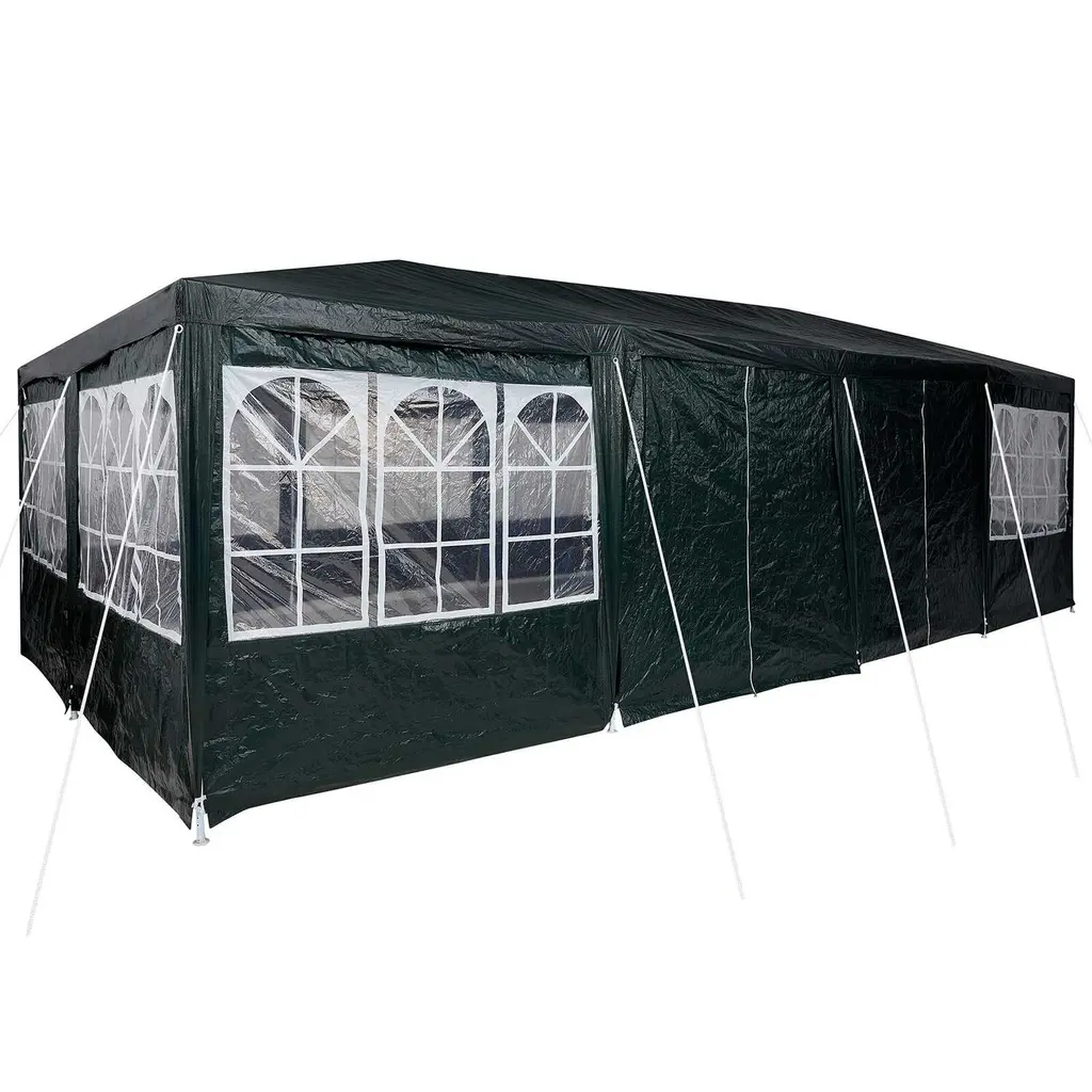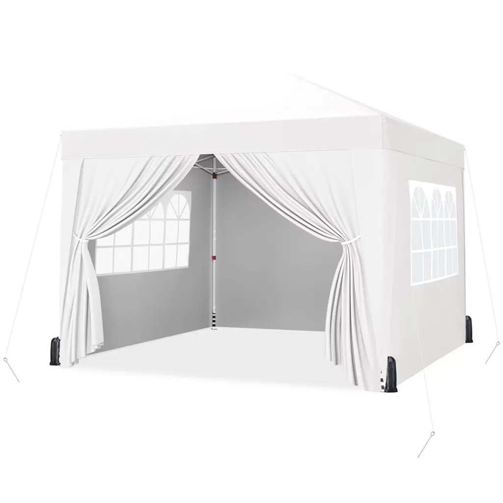 This Modern Party Tent is a fabulous shelter for gatherings and events, boosting your outdoor space with its sleek design and practical features. It's great for garden parties, weddings, or local events, and its minimalist style fits right in with nature. The tent's square shape gives you plenty of space, making it perfect for hosting a variety of outdoor activities with style and comfort. PE Material Durability The tent is made from top-notch polyethylene, which is super durable against the elements, ensuring you can use it for a long time. It's tough against everyday wear, making it great for outdoor events and providing reliable cover for various occasions.Full Enclosure with PE Walls Comes with eight zip-together PE walls that let you fully enclose the tent or leave it open, giving you the flexibility to set it up however you like. Even when the weather changes, your guests will stay comfy and cozy inside.Manual Adjustment Functionality Designed with a manual collapsible feature, it makes adjusting and taking it down simple—no fancy tools are needed. You can quickly set it up and store it away easily, making it a practical choice for all sorts of events.Summer-Ready Design Perfect for summer, this tent is made from materials that are not just UV-resistant but also water-resistant, offering protection against the sun and unexpected rain, so your event can go off without a hitch.Outdoor Care Made Easy Made for outdoor use, it needs very little upkeep. After your event, just wipe down the PE walls for cleanliness, and the sturdy materials mean you won’t have to worry about maintaining it too often over the long haul.