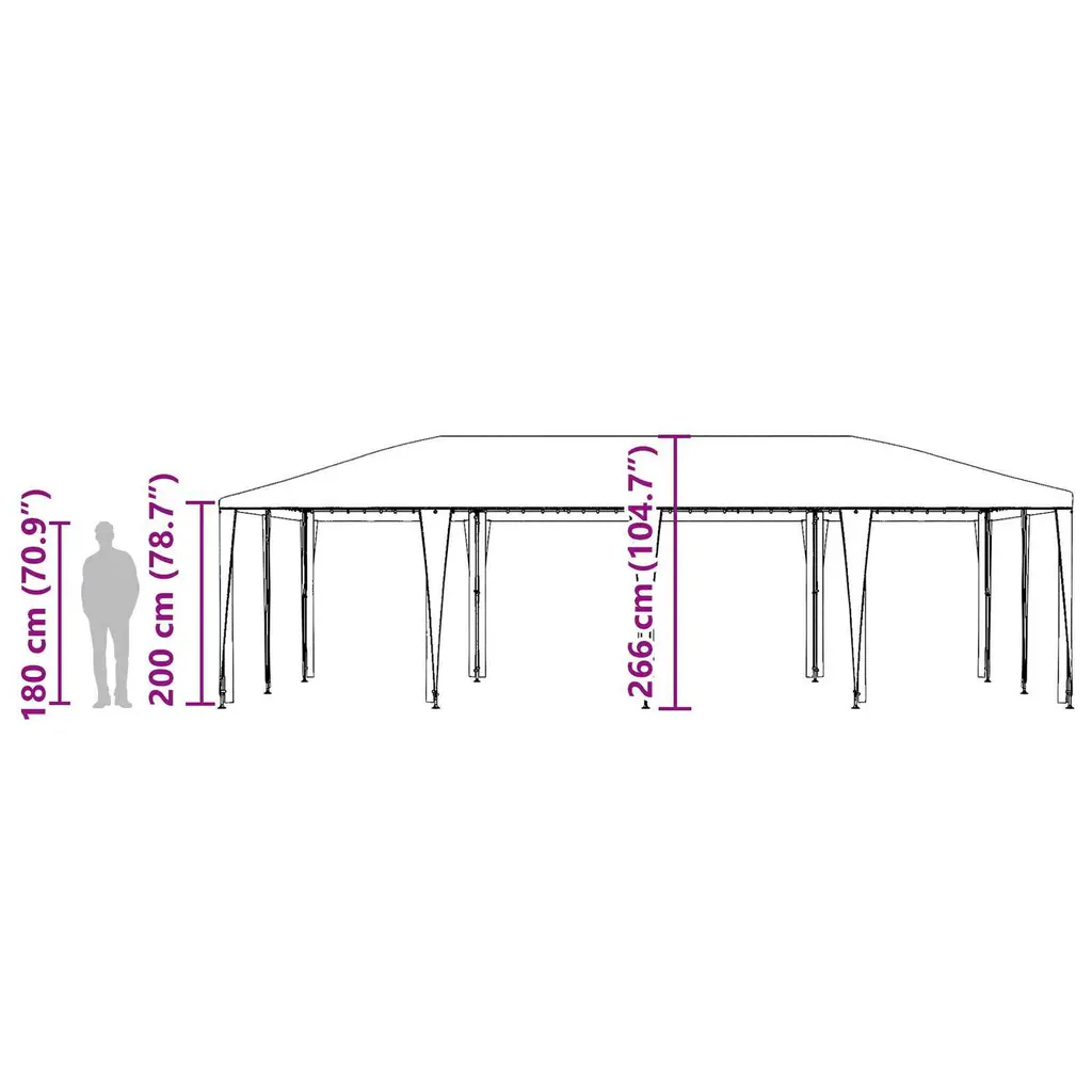 This Party Tent offers a stylish solution for hosting gatherings with its modern look and practical design. Made for outdoor events, its minimalist vibe fits any garden or terrace, bringing shade and comfort for all kinds of occasions. Whether it’s for birthday bashes, family reunions, or weddings, this tent helps create a trendy and functional venue. UV Protection: The tent is made from high-quality polyester that offers excellent ultraviolet light resistance, making it reliable and long-lasting for outdoor events. The fabric keeps its integrity and color in bright sunlight, ensuring you can use it season after season, whether for casual backyard parties or more formal garden ceremonies., Powder-Coated Steel Frame: The sturdy steel frame is finished with a powder-coated treatment, providing outstanding durability and resistance to weathering. This strong structure gives the tent reliable stability, ensuring safety and support even when it's windy. So, its solid design supports a bigger canopy for your guests., Spacious Design: The tent’s generous size provides plenty of coverage, fitting both small gatherings and larger get-togethers perfectly. It creates a cozy environment that can include seating areas, dining set-ups, or dance spots. This versatility makes it great for weddings, outdoor parties, or business events requiring a temporary pavilion., Collapsible Convenience: Designed to collapse, it can be easily folded for storage, saving space after the event. With its straightforward assembly and dismantling process, the tent gives you flexibility in hosting events of all sizes without the hassle of maintenance or storage worries., Manual Adjustment: The tent includes manual mechanisms for size adjustments that you can handle without needing any tools. This feature makes it easy to use and flexible for different event setups, suitable for personal occasions and professional outdoor engagements.