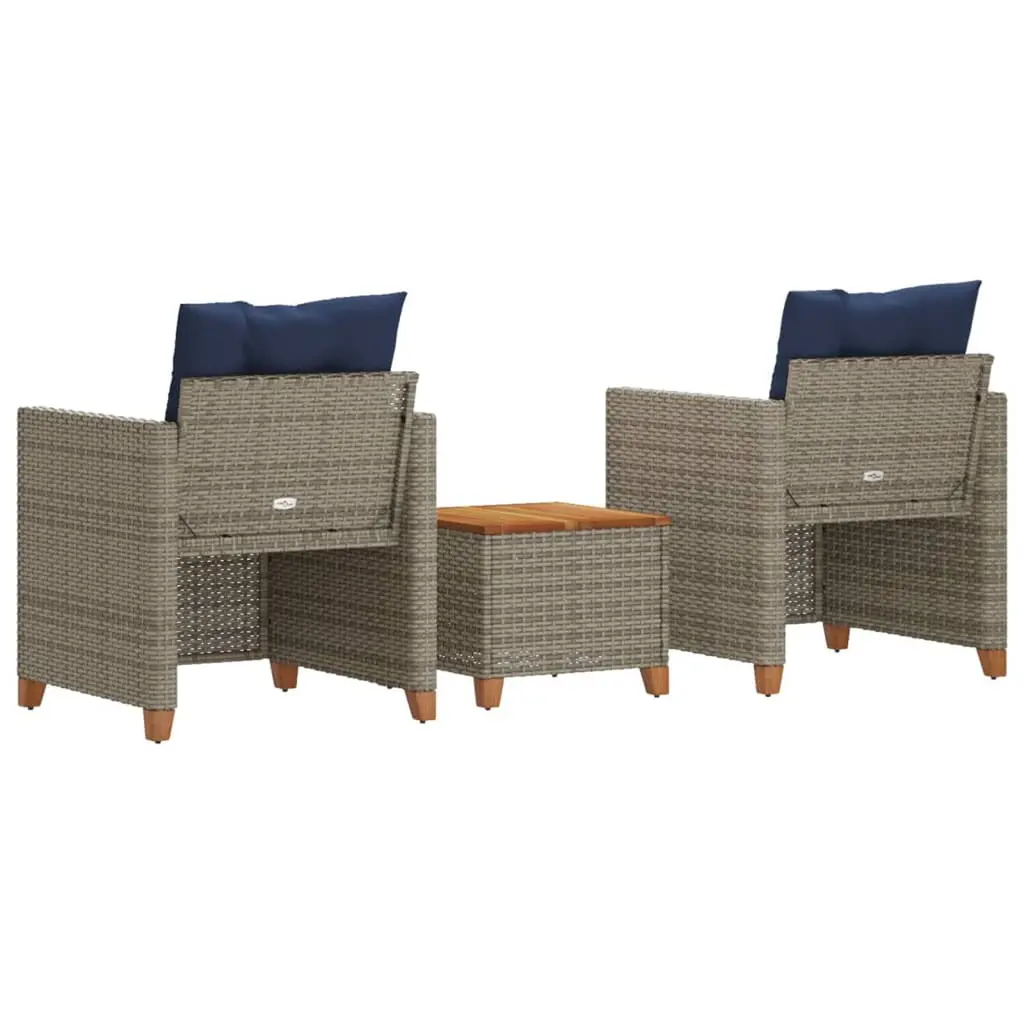 Vidaxl Patio Bistro Set Grey Pe Rattan Medium Adjustable Feet