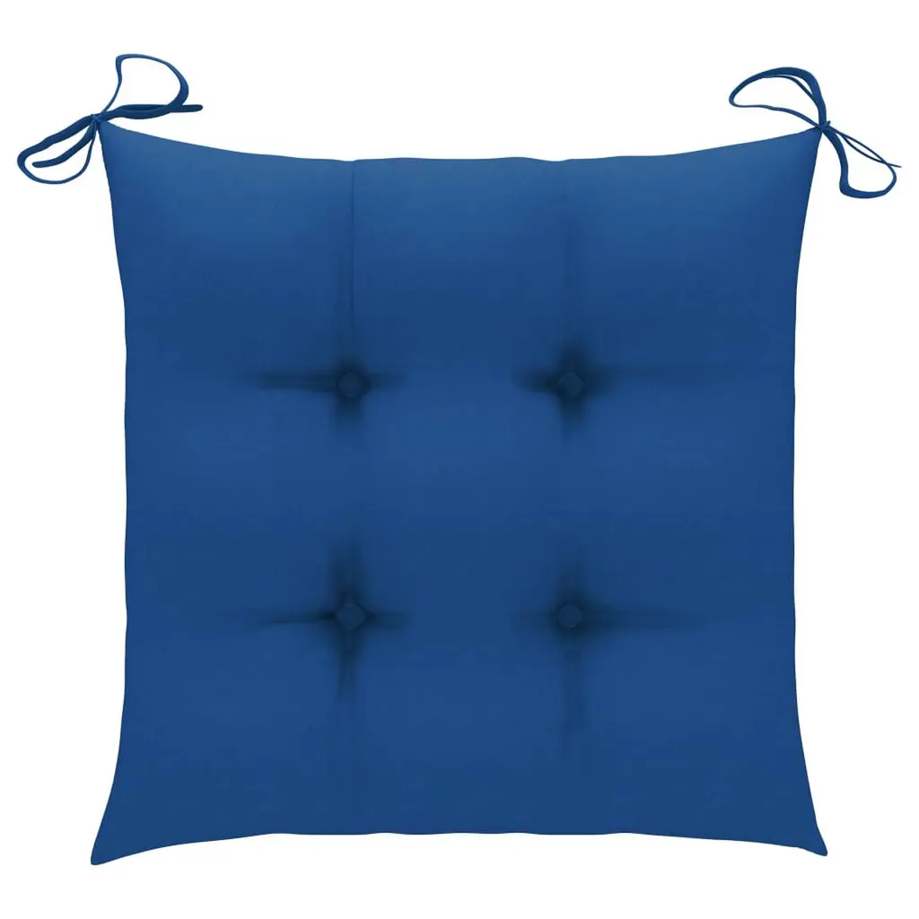 This patio chair set gives you a nifty and stylish seating option for places like your balcony or garden. Made from solid teak wood, these chairs add a modern touch to your patio while being durable and comfy for ages. The stackable design makes it easy to store, so it's perfect for smaller spaces.Made of weather-resistant teak wood, these chairs can take whatever the weather throws at them while looking good.Each chair comes with comfy polyester cushions, great for long sitting sessions.With a lovely varnished finish, these chairs not only feel good but also make any outdoor area look better.Be it a family gathering or a quiet evening outside, these chairs help create a warm and inviting vibe.