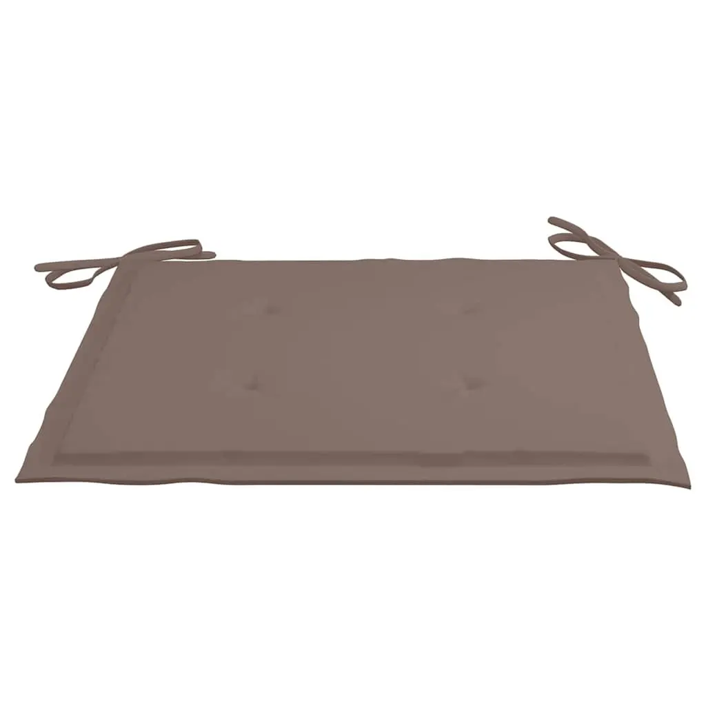 These wooden garden chairs are designed to become the focal point of your garden or patio.Constructed from extremely durable teak hard wood, this piece of teak furniture has been seasoned, kiln dried and then fine sanded to give a very smooth appearance. Teak wood is known for its exceptional strength and weather resistance, making it far more suitable for garden furniture than any other kind of wood. Teak wood is the perfect choice if you want to purchase a long lasting piece of garden furniture. The high grade stainless steel frame also makes them highly durable and sturdy. The included cushion is more than a practical addition; it also has a decorative function. Sit down for a lovely outdoor dinner or just relax and enjoy the weather with this classic garden chair set.Note: In order to extend the life of your outdoor furniture, we recommend you to clean it regularly and do not leave it outdoors without protection unnecessarily.Clean: Use a mild soap solution.Storing: If possible, store in a cool, dry place indoors. If the product is stored outdoors, protect it with a waterproof cover. Wipe and dry the excess water or snow from flat surfaces after a rain or snowfall. Allow sufficient air circulation to avoid moisture-related damage.