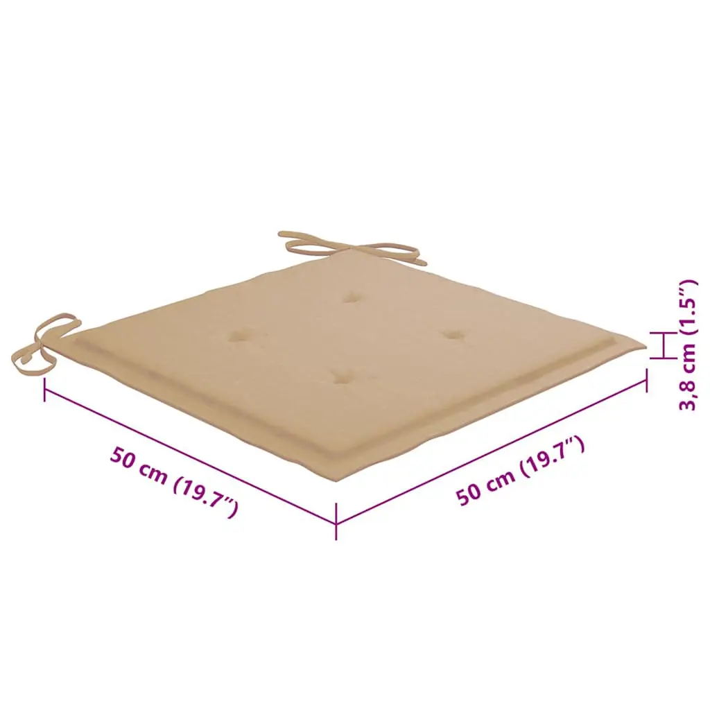 These wooden garden chairs are designed to become the focal point of your garden or patio.Constructed from extremely durable teak hard wood, this piece of teak furniture has been seasoned, kiln dried and then fine sanded to give a very smooth appearance. Teak wood is known for its exceptional strength and weather resistance, making it far more suitable for garden furniture than any other kind of wood. Teak wood is the perfect choice if you want to purchase a long lasting piece of garden furniture. The high grade stainless steel frame also makes them highly durable and sturdy. The included cushion is more than a practical addition; it also has a decorative function. Sit down for a lovely outdoor dinner or just relax and enjoy the weather with this classic garden chair set.Note: In order to extend the life of your outdoor furniture, we recommend you to clean it regularly and do not leave it outdoors without protection unnecessarily.Clean: Use a mild soap solution.Storing: If possible, store in a cool, dry place indoors. If the product is stored outdoors, protect it with a waterproof cover. Wipe and dry the excess water or snow from flat surfaces after a rain or snowfall. Allow sufficient air circulation to avoid moisture-related damage.
