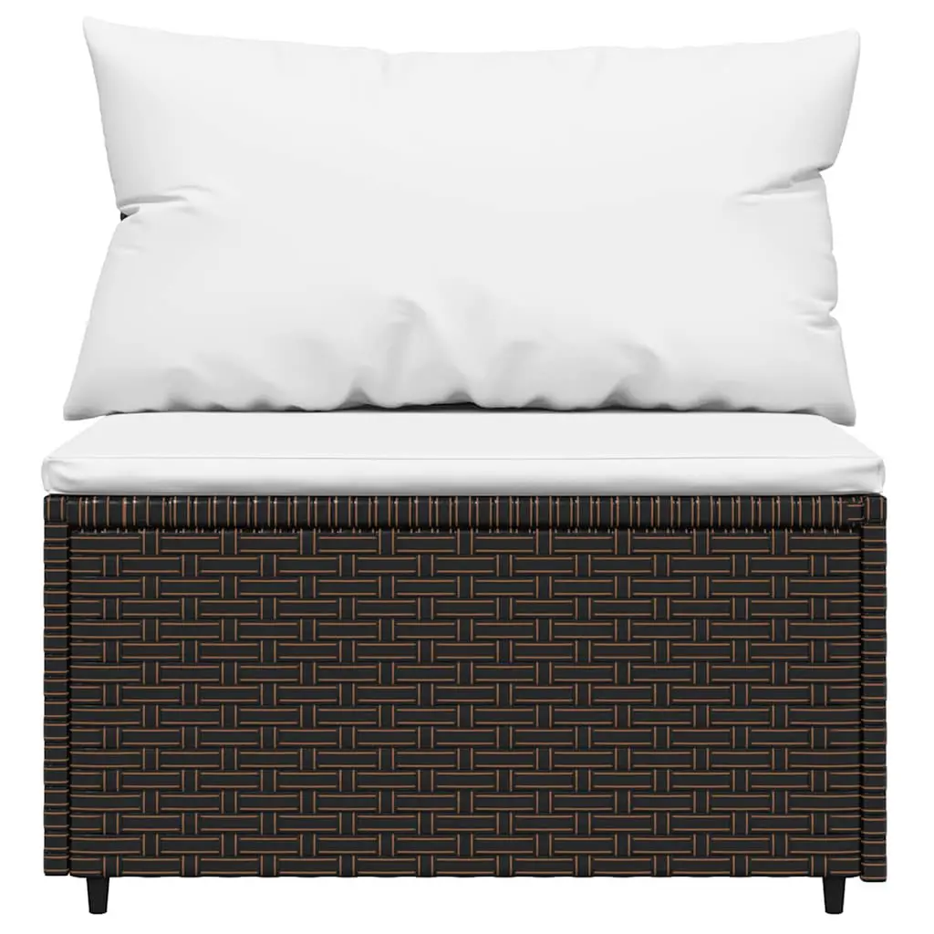 Vidaxl Patio Middle Sofa Brown With Cream Cushions