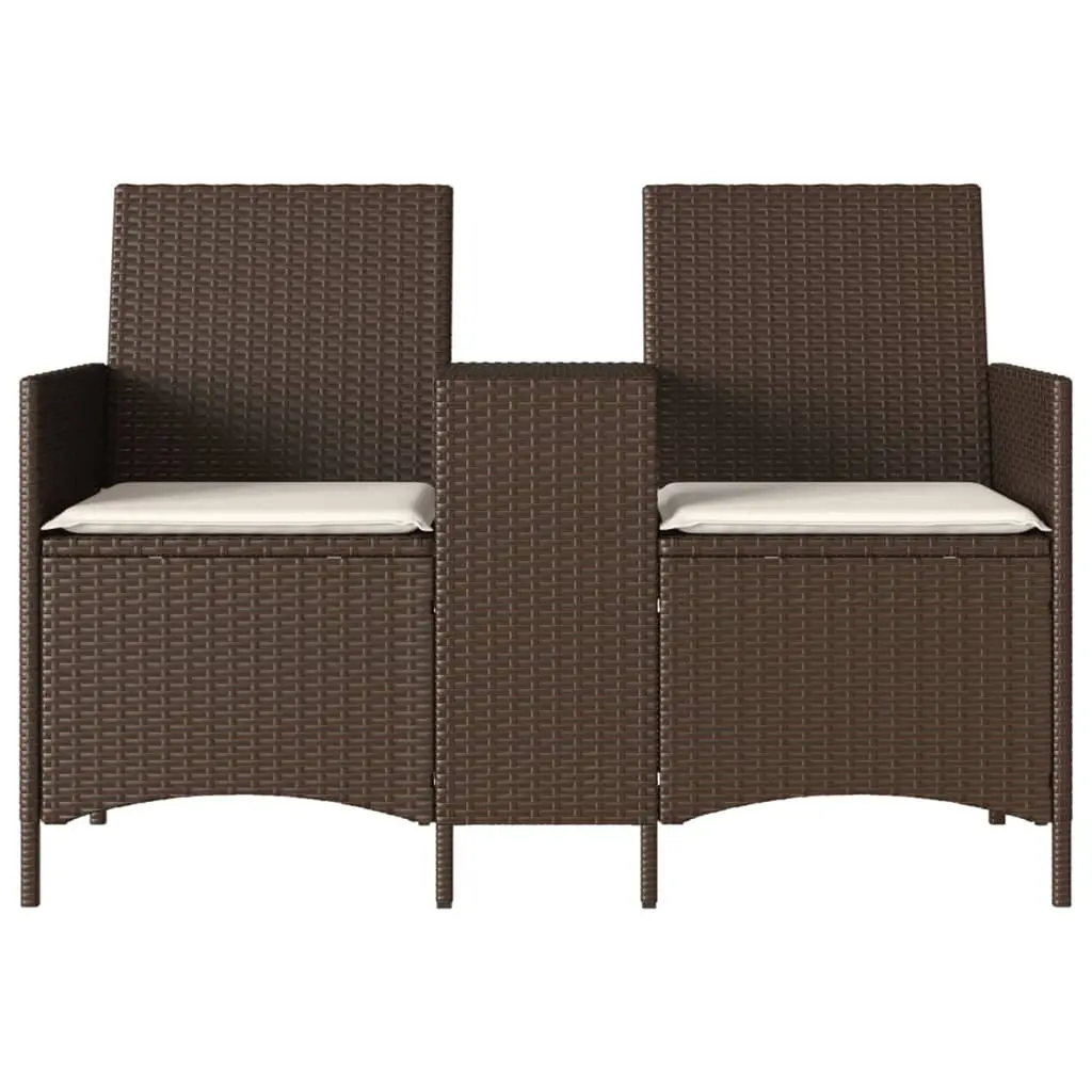 Vidaxl Patio Sofa 2-Seater With Table And Cushions Brown Poly Rattan