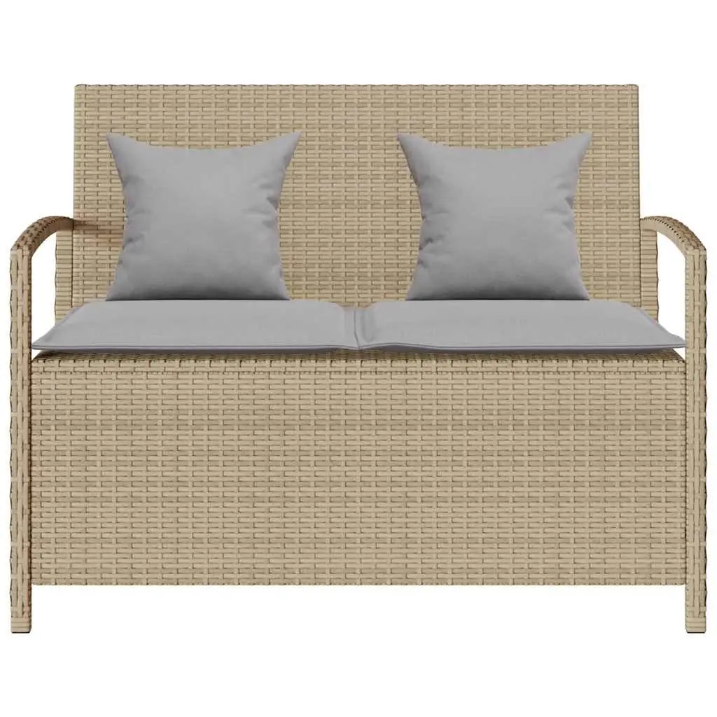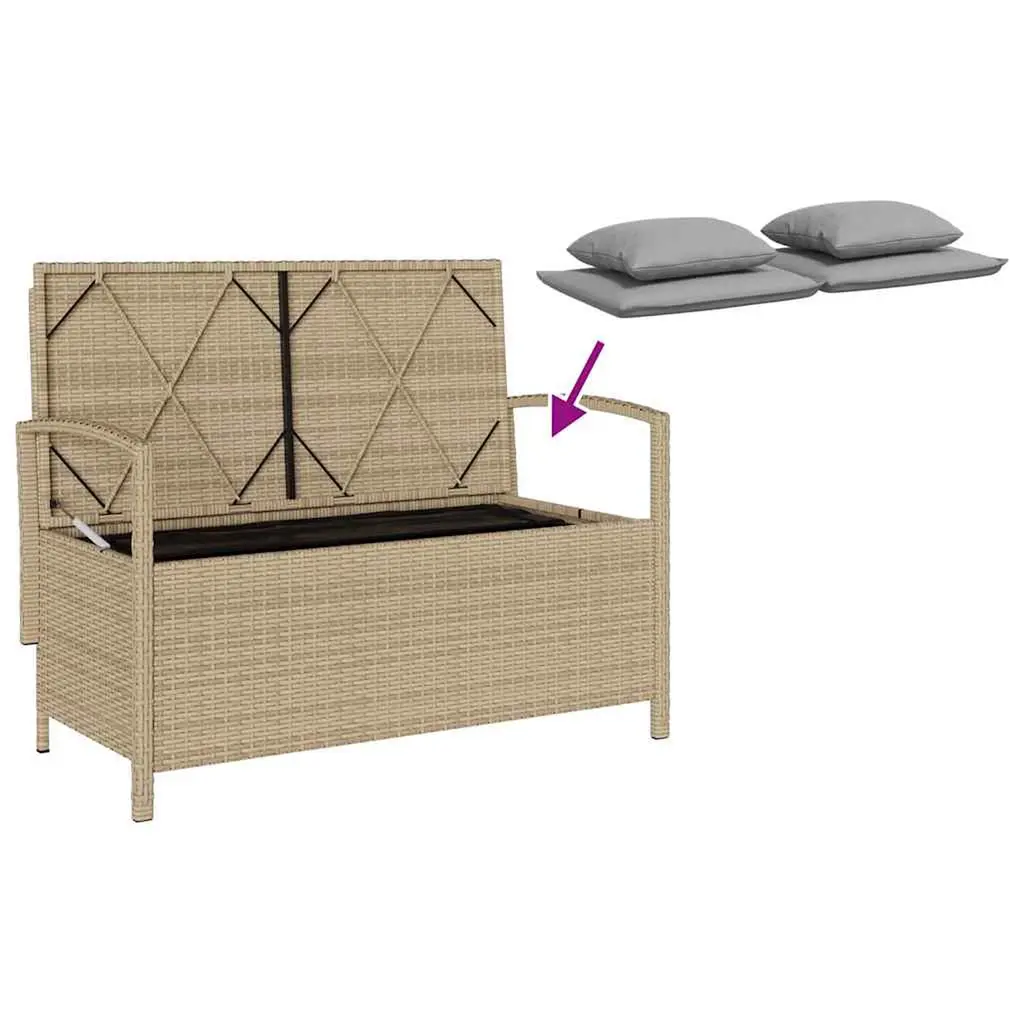 Vidaxl Patio Storage Bench With Cushion Beige Poly Rattan