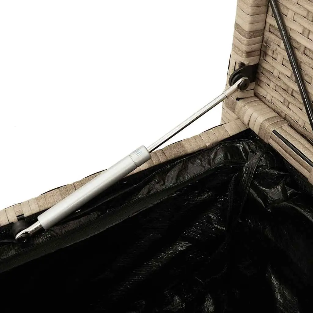 This patio storage bench not only offers outdoor seating but is also perfect for keeping your outdoor furniture cushions, gardening supplies, pool towels, and other items organised and easily accessible.Durable material: PE rattan, also known as poly rattan, is a strong, low-maintenance synthetic material that looks like natural rattan. It's lightweight, easy to clean, and commonly used for outdoor furniture due to its durability and weather-proof properties.Storage function: The garden seat features storage space underneath, equipped with a water-proof bag for storing cushions, toys, and other items. The inner bag can be securely attached to the seat with hook-and-loop fasteners, ensuring stability and preventing movement.Safe and easy to open and close: The gas spring makes it easy to open the lid and keeps it from slamming shut or pinching fingers.Comfortable seat experience: This outdoor furniture, complete with thickly padded cushions, offers a comfortable seating experience.Removable and washable cover: These seat cushions feature removable covers for easy washing and maintenance.Good to know:To make sure your outdoor furniture stays beautiful, we recommend protecting it with a waterproof cover.