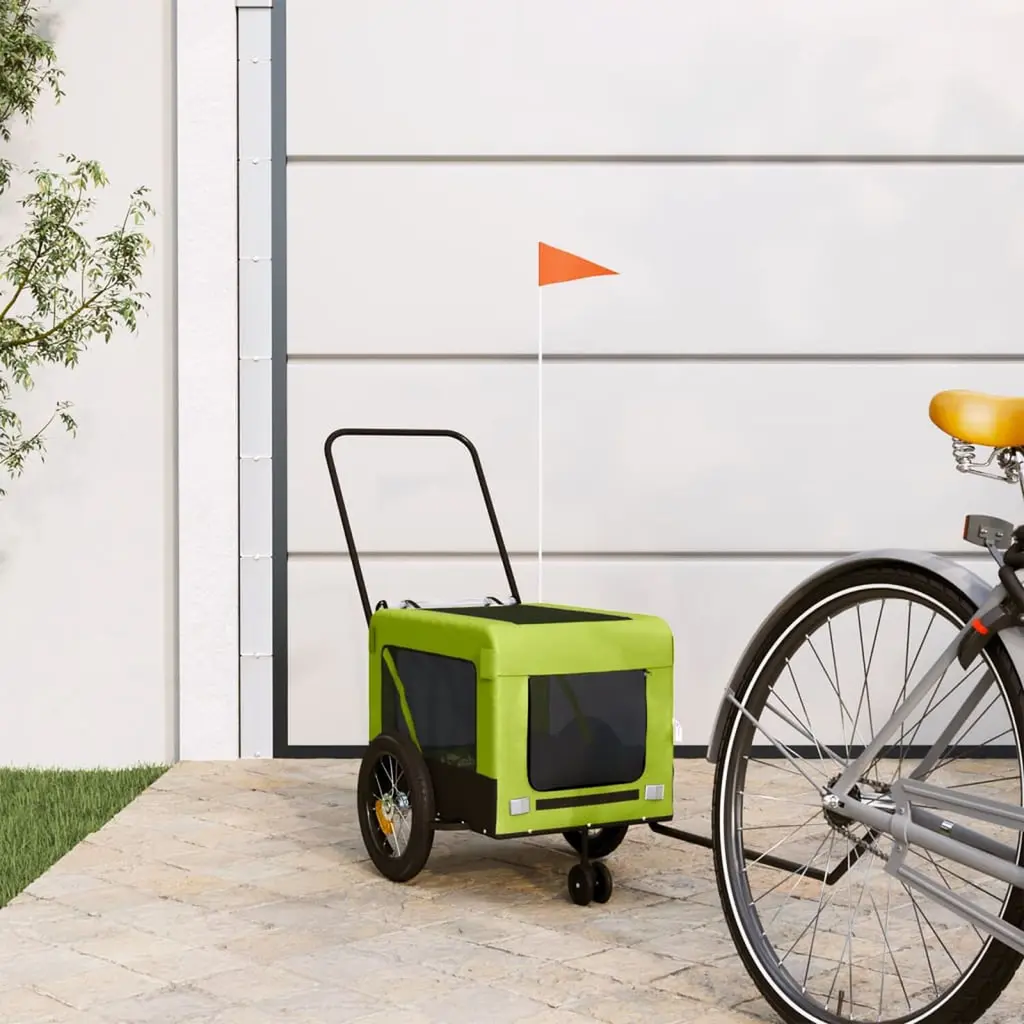 Vidaxl Pet Bike Trailer Green And Black Oxford Fabric, Iron, Pvc Medium