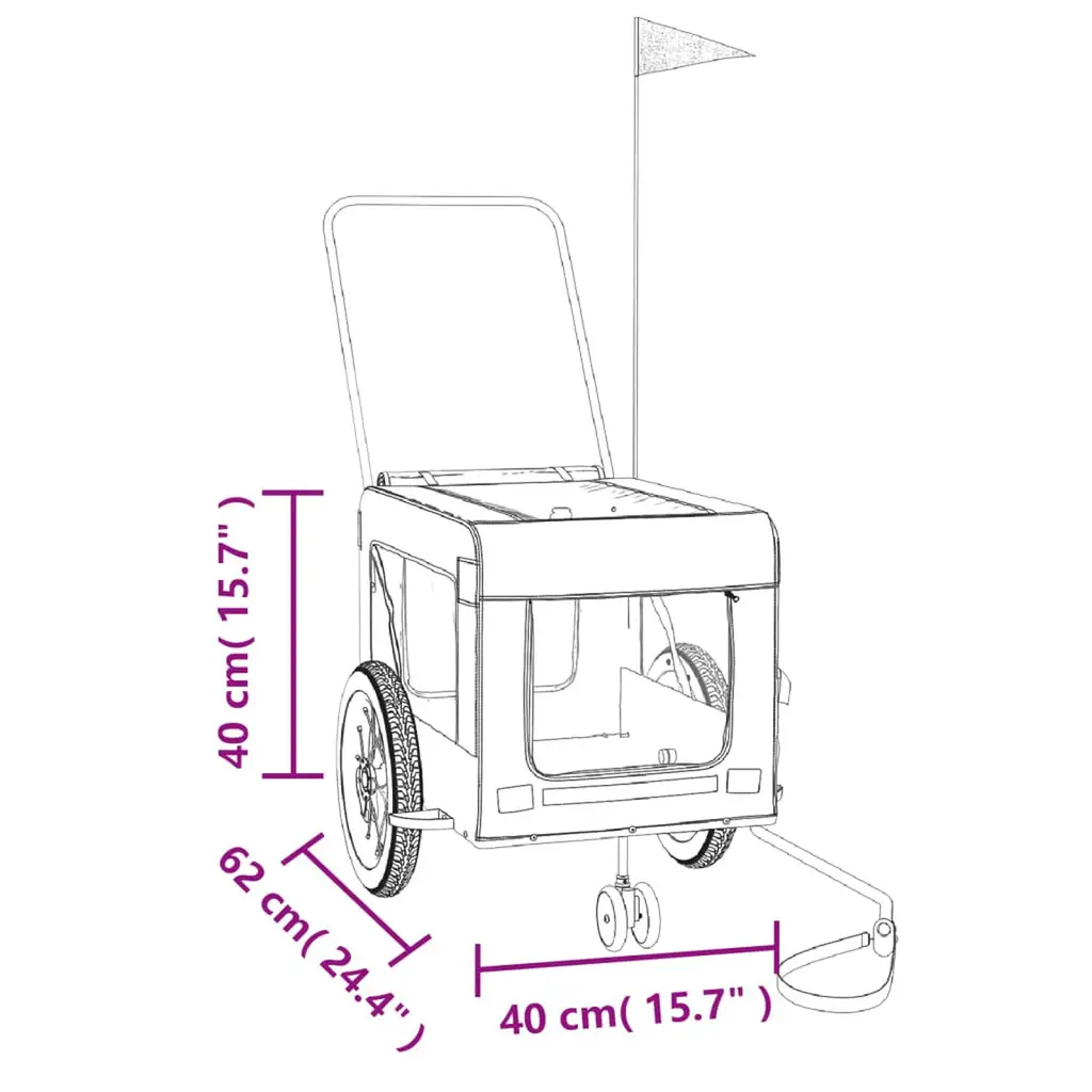 Vidaxl Pet Bike Trailer Grey And Black Oxford Fabric, Iron, Pvc Small