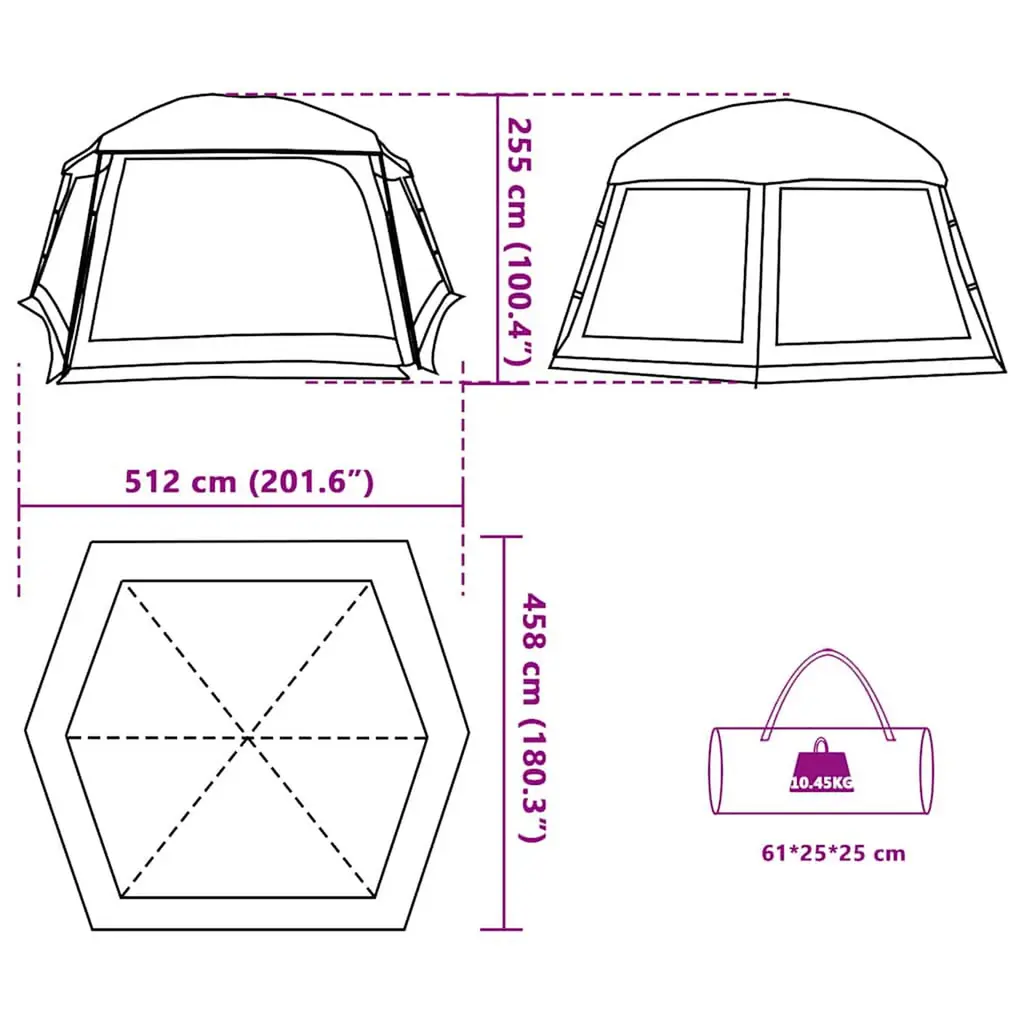 This pool tent shields you from rain and sun, ensuring a comfortable pool experience.Waterproof: Made from polyester with a PU coating, this swimming pool tent is waterproof and wind-proof, providing shelter and keeping you dry and comfortable as you relax in the tent.Multifunctional tent: This tent provides shelter for the swimming pool, while also catering to a variety of needs such as family camping, picnics, parties, outdoor dining, and more.Good ventilation & mosquito protection: The mesh walls not only offer excellent ventilation but also ensure a comfortable experience for users.Detachable rainfly: The detachable rainfly can be attached to the tent's top for weather protection and privacy.Lightweight and portable: The foldable and lightweight design allows you to easily pack the tent and store it in the included carry bag for easy transport.Warning:Keep all flame and heat sources away from this product fabric.