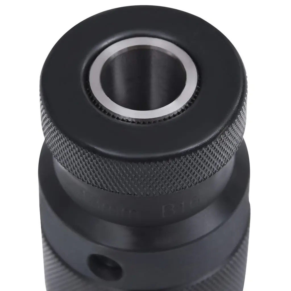 This robust chuck with taper arbour MT2-B16 is widely used with drill machines, milling machines, lathes, boring lathes and electric hand tools. It has a clamping range of 0.04 - 0.51 ".This drill chuck is made of steel with high hardness and high precision. Keyless design, tightening and loosening is by hand force offers a quicker and easier chucking and unchucking. The unique thrust bearing helps the application of torque by the handle into a greater clamping force.