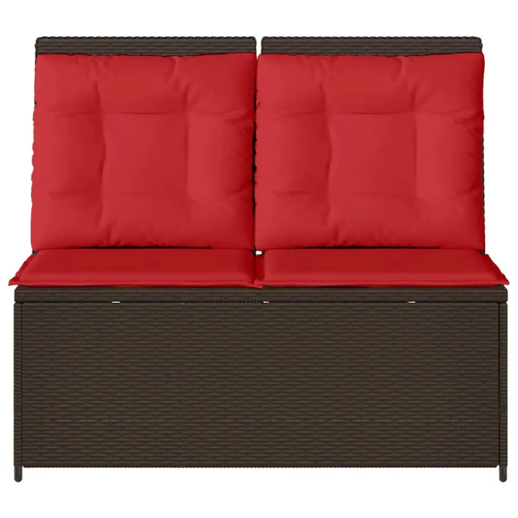 Vidaxl Reclining Patio Bench With Cushions Brown Poly Rattan