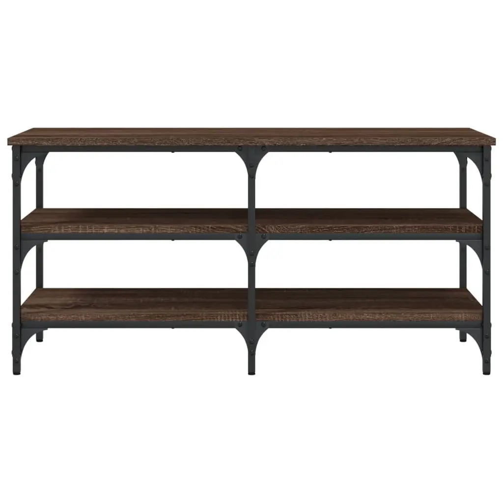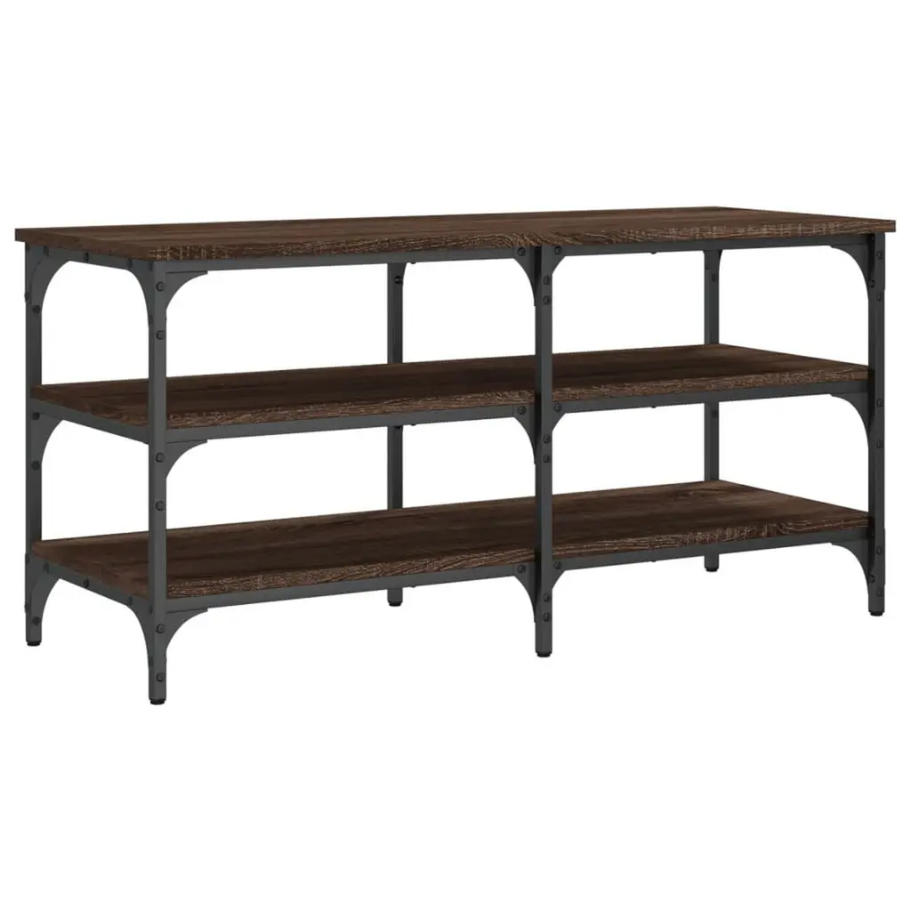 This shoe storage bench perfectly mixes style and practicality with a lovely brown oak finish that adds warmth to any hallway or foyer. Designed for adults, this backless bench has a smooth seating surface and three tiered shelves to keep shoes sorted, adding an industrial flair to your entryway. The shoe storage bench has plenty of space with its three-tiered design, allowing for easy organization and quick access to footwear.Its sturdy build features a robust metal frame that boosts durability, ensuring this bench withstands everyday use while keeping its sophisticated charm.Adjustable feet let you tailor it for uneven floors, stopping any wobbling and making sure the bench stays stable wherever you put it.The chic industrial design uses raw materials and a sleek finish, making it a fab accent piece for modern decor.This versatile shoe bench measures 39.4 in long, 15.2 in wide, and 19.3 in high, making it perfect for various entryways or living spaces needing extra seating and storage.