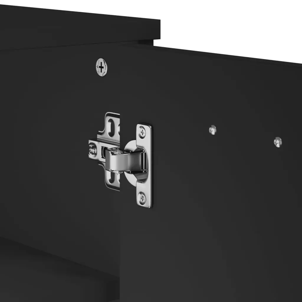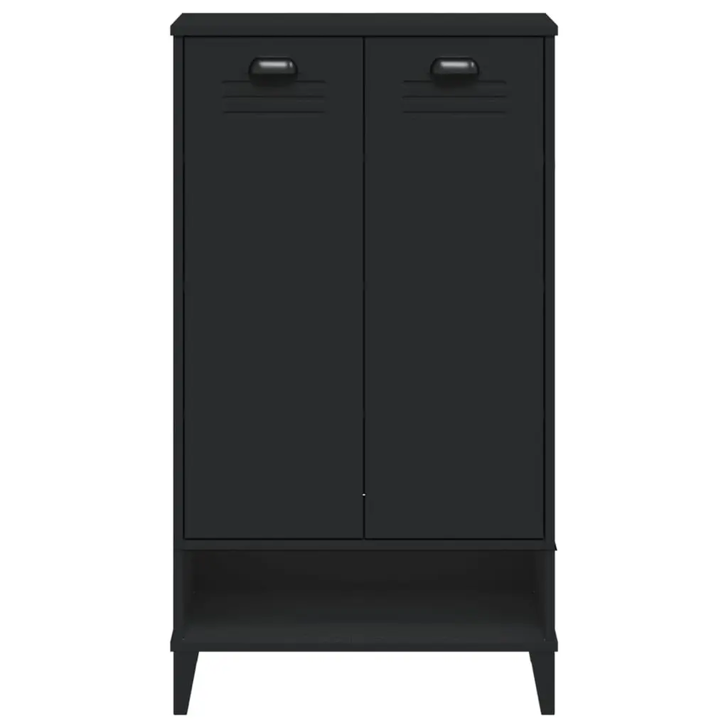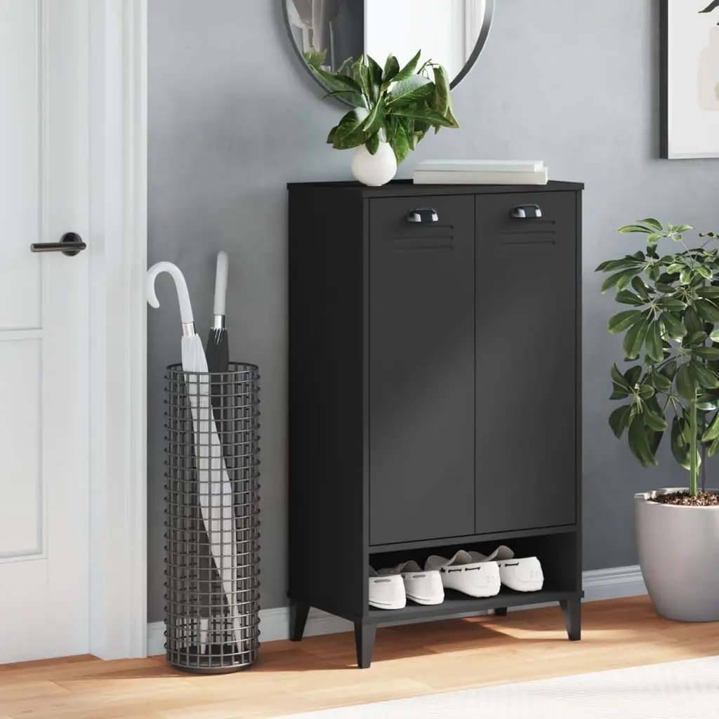 This shoe storage cabinet is designed with an industrial vibe, making it a practical yet stylish addition to your living room or hallway. With its matte black finish and engineered wood build, it keeps your footwear neat and easy to reach, so you can keep your spaces tidy and looking great. Ample Storage: This shoe cabinet fits up to 10 pairs of shoes, perfect for busy households or shoe lovers.Durable Construction: Made from robust engineered wood, it provides strong support for your shoes, preventing them from warping or getting worn over time.Sleek Design: The modern matte black finish complements any room setting, whether minimalist or industrial.Stability Features: Comes with a wall attachment for secure installation, preventing tipping and ensuring safety.Versatile Use: Great for living rooms or hallways, this cabinet provides a stylish and effective way to store your shoes.