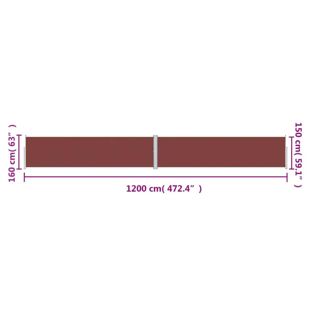 Vidaxl Side Awning Brown Polyester With Pu Coating 63 X 472.4 In