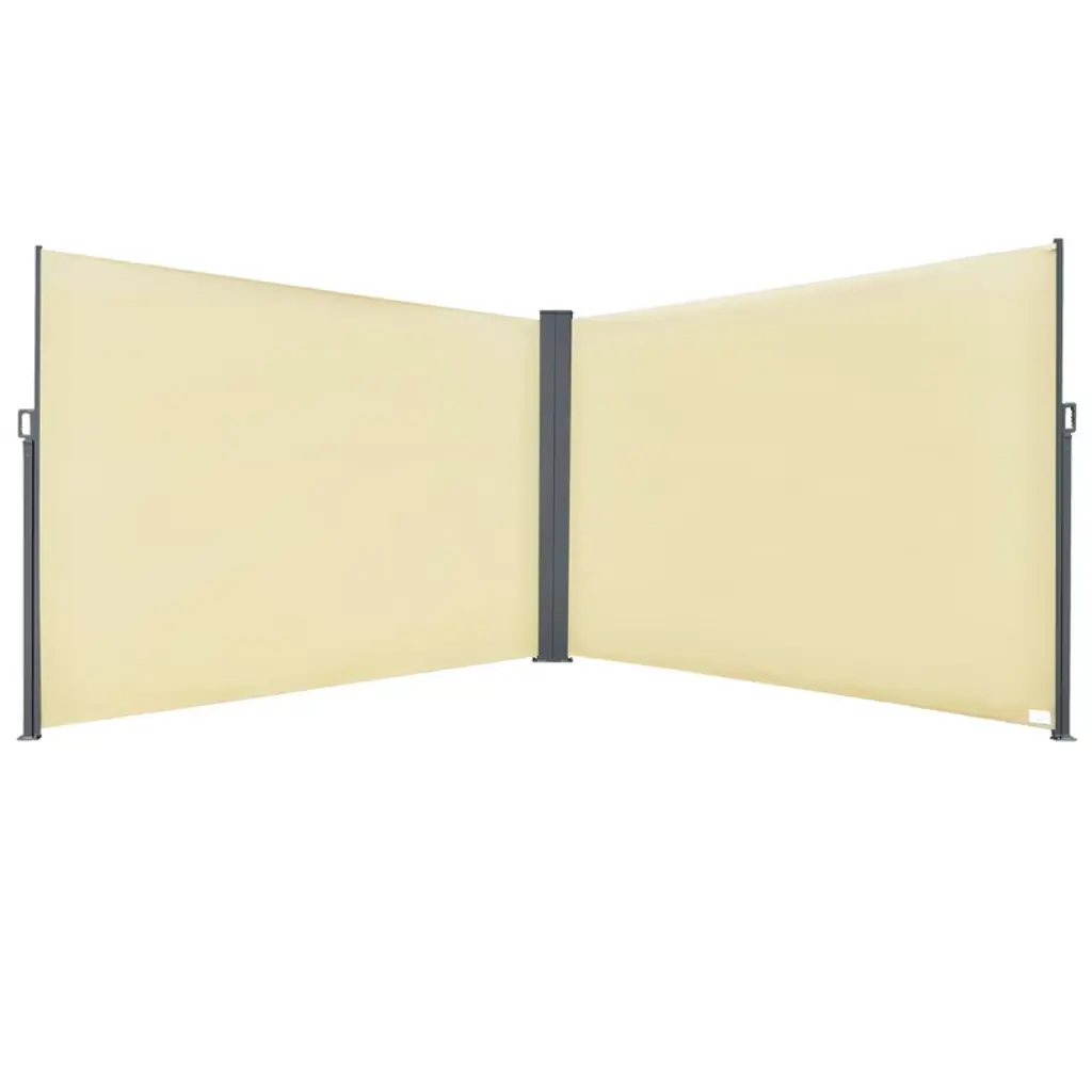 This retractable side awning gives you stylish and adjustable shade for your balcony or garden, measuring 86.6 in height and 393.7 in wide. Its elegant cream finish goes well with modern outdoor spaces, creating a comfy and private spot that’s easy to adjust against sun or wind. Get shade just how you like it, easily adjustable depending on the time of day or weather.The fabric’s UV-proof and water-resistant properties keep you protected from the elements for longer.Its contemporary design blends smooth with outdoor decor, adding a touch of sophistication.Installation is super easy with the included mounting gear and instructions — anyone can do it.Great for relaxing on your balcony, setting up a chill terrace vibe, or giving you a bit of privacy in the garden.