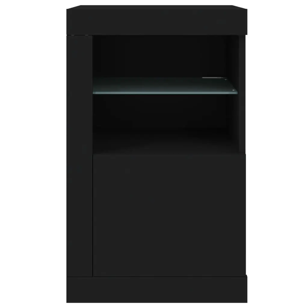 This Modern Side Cabinet is a brilliant mix of functionality and style, made for modern homes. With a sleek black finish and clear accents, it fits right into any hallway or living room, giving you both a nice look and handy storage solutions. Ample Storage: The roomy cabinet design offers two storage areas, great for organizing your items while keeping it all looking tidy.Integrated LED Lighting: Built-in color-changing LED lights shine inside, improving visibility and showing off your decor, handy day or night.Quality Materials: Sturdy engineered wood and synthetic glass make this side cabinet both robust and easy to clean.Contemporary Style: Its streamlined design, with smooth lines and a sleek black finish, fits right in with various decor styles.Versatile Use: Perfect for different spaces like hallways or living rooms, the cabinet easily adapts to what you need.
