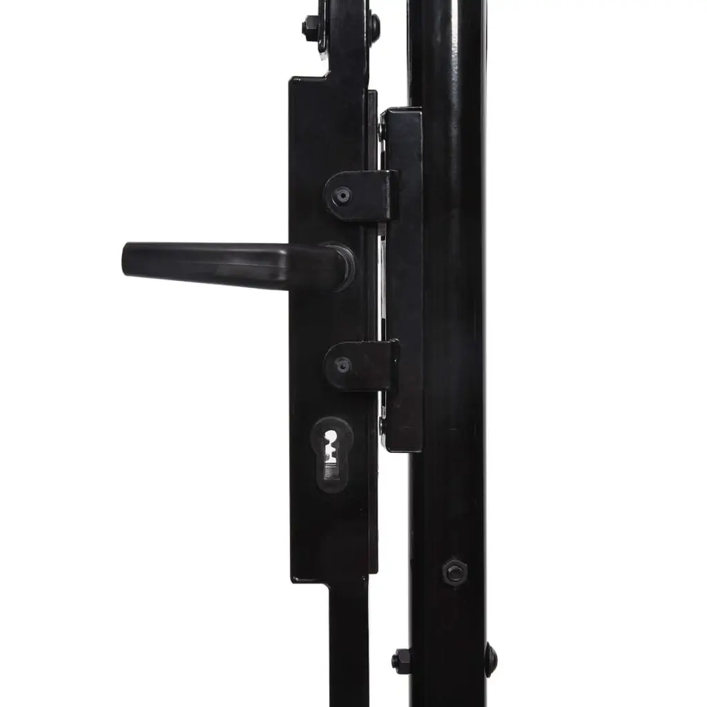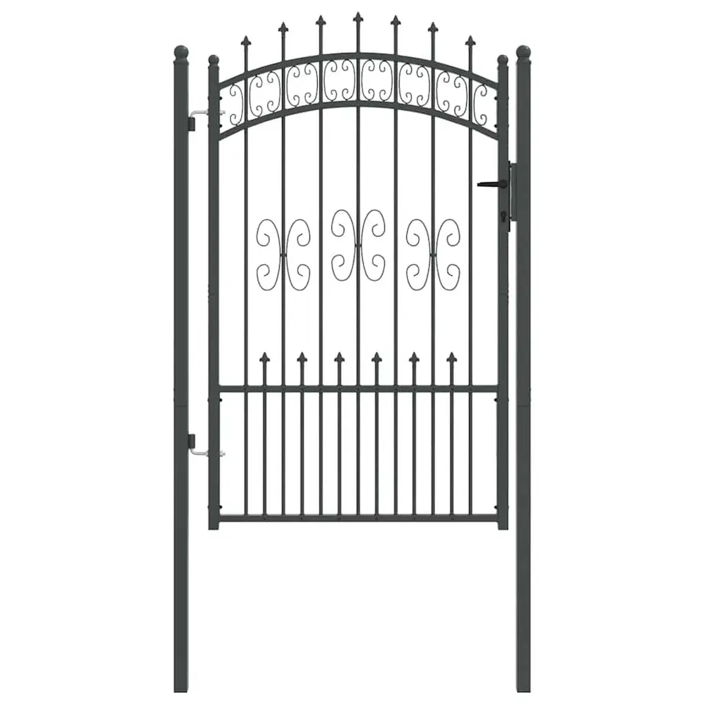 This garden gate will form a contemporarily styled, practical barrier, which will separate your garden from the outside world. Highly stable and durable, the fence gate will make a practical garden barrier for your garden, patio or terrace.With its elegant hoop top design and a strong horizontal brace to reinforce the frame, our garden gate will provide security, while forming a fabulous entryway onto your property. Manufactured from heavy duty steel, the gate is powder-coated against corrosion. It also comes with a bolt hinge for quick locking, and mounting posts for easy installation. Three matching keys are also included in delivery. This gate is a great combination of style, strength and stability!