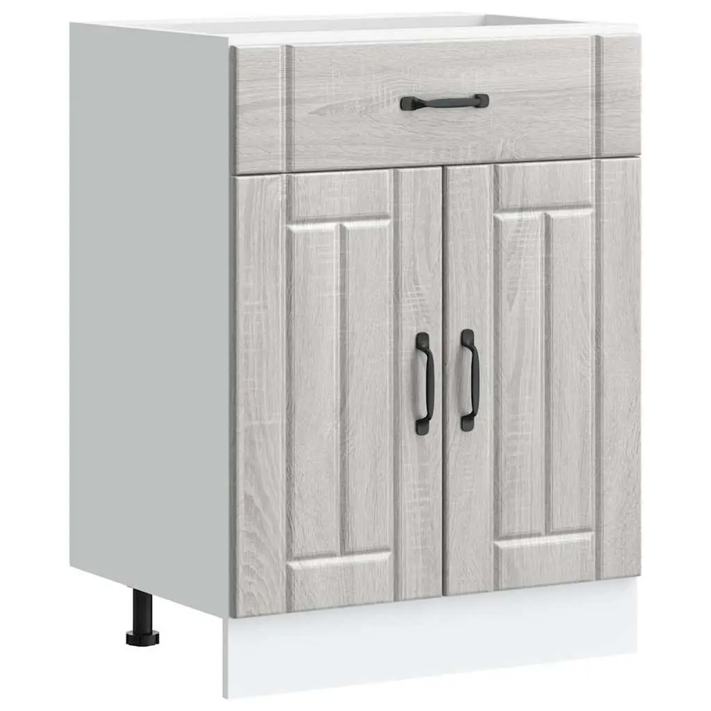 This sink base cabinet mixes function with style, giving you a practical fix for your kitchen storage issues. Made from tough engineered wood, it has a smooth finish in a lovely old wood color that adds to the looks of any kitchen space, making it a smart addition for both use and decor. Plenty of Storage: The cabinet has a big main space and two hinge doors, making it easy to store kitchen supplies neatly. Height Adjustable: With adjustable feet, this cabinet can be set up to stay steady on uneven floors. Modern Look: The sleek minimalist design fits right into different kitchen styles, adding a touch of elegance. Quality Material: Made from durable engineered wood, it has a sturdy build that stands up to daily use, making sure your kitchen items last. User-Friendly Assembly: The cabinet comes with straightforward instructions, making setup easy with two people.