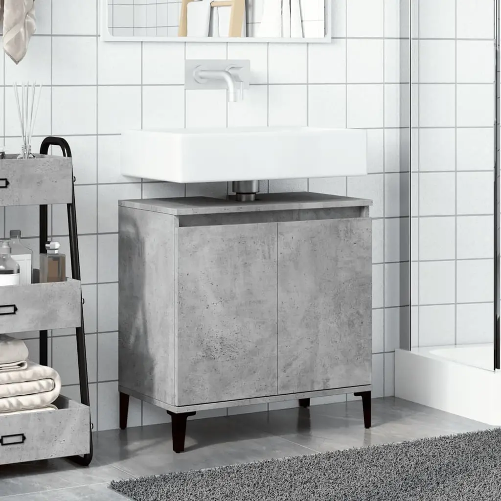 This sink cabinet is the perfect combo of modern design and functionality, giving you a stylish way to store bathroom essentials. Its clean lines and chic concrete gray finish add a touch of class, making it fit well with any decor while being super practical for everyday use. Ample Storage: Loads of space to stash your towels, cleaning supplies, and toiletries without any fuss - stylish and practical. Sleek Design: With its minimalist vibe and modern finish, this cabinet brings a nice upgrade to your bathroom. Sturdy Construction: Built from solid engineered wood and metal feet, this cabinet is ready for daily use, keeping your items secure. Easy Maintenance: A quick wipe with a damp cloth is all you need to keep it looking sharp, so you can spend more time relaxing instead of cleaning. Dimensions: Size of 22.8 x 13.0 x 23.6 in is just right for your bathroom, keeping things organized without taking up too much space.