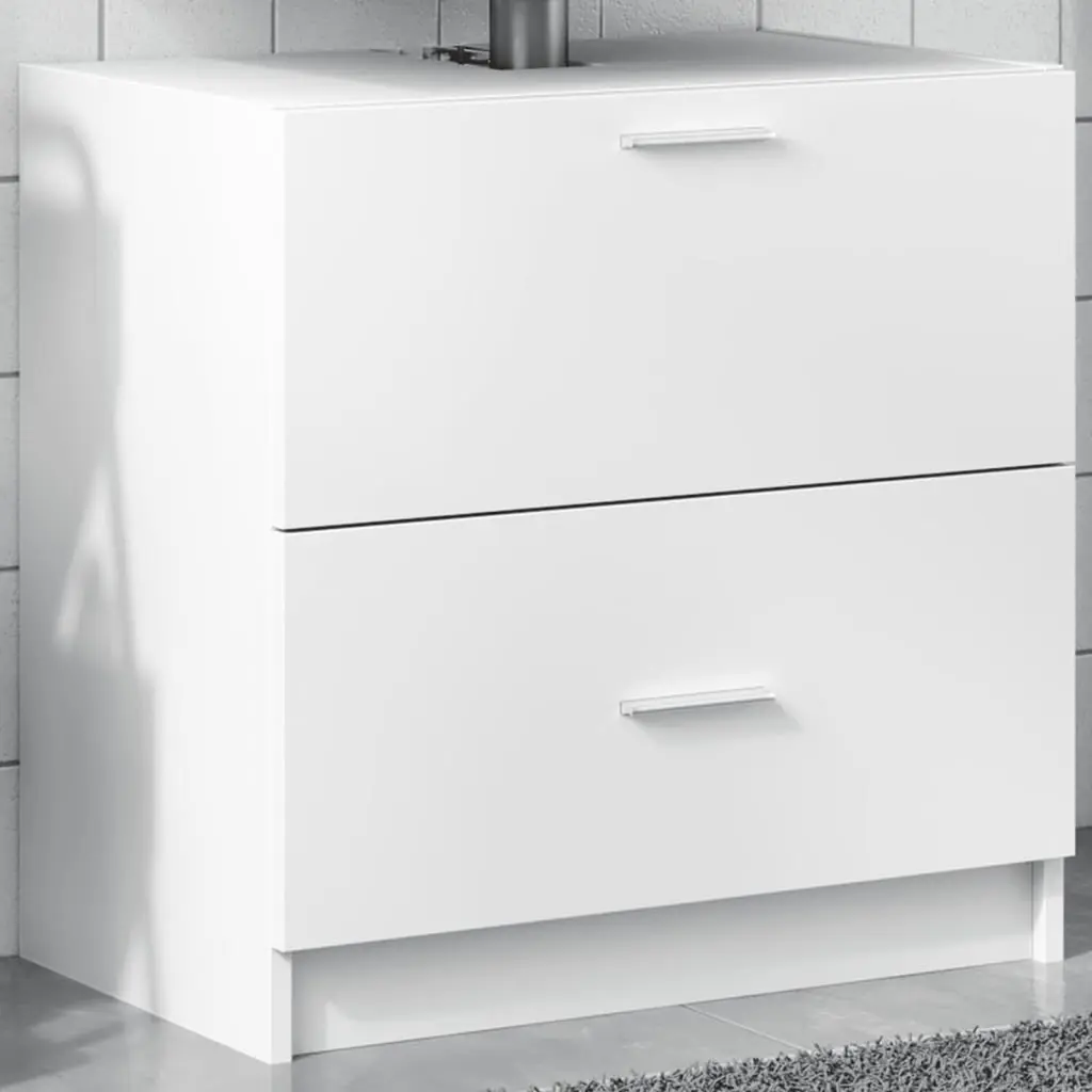 This sink cabinet has a sleek and modern look, perfect for any bathroom. Made from high-quality engineered wood, it not only looks great but also gives you essential storage beneath your sink. Ample Storage: Made to make the most of tight spots, it’s got space for toiletries and cleaning gear. With two big doors and a drawer, you’ll easily access everything you need.Modern Design: This cabinet has a contemporary flair with its shiny white finish and clean lines, making it a stylish addition to your bathroom. Its smooth surface looks great, blending well with different styles.Durable Construction: Built from engineered wood, this cabinet is as sturdy as it is good looking. Its tough materials can hold up to 66.1 lbs, so it’s built to last.Easy Assembly: Comes with all the bits and a user-friendly guide to help you set it up without any fuss.Versatile Use: Great for any bathroom, perfect for keeping personal stuff while looking smart. It ticks both functionality and style boxes, really upping your grooming routine.