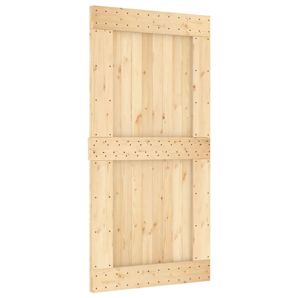 This solid pine wood sliding door is designed to enrich the entrance area of your house and also ensure better security for your home.Solid pine wood: The interior door is made of solid pine wood. Solid pine wood is a beautiful natural material. Pine wood has a straight grain, and the knots give the material its signature, rustic look.Sturdy sliding rails: Steel is an exceptionally hard and strong material. It offers sturdiness and stability. The powder coating on steel creates a protective layer against wear and tear. Made of powder-coated steel, the sliding rails are sturdy, durable and heavy-duty.Quiet and smooth sliding: Thanks to the internal bearings, your internal sliding door will slide smoothly and quietly. Doorstops are also included to prevent the derailing of the rollers, while the rubber gaskets will buffer the bump from rollers and reduce the noise.Space-saving design: This wooden sliding door saves space and looks more spacious. It is the first choice for a simple and atmospheric modern home design.Wide applications: The sliding barn door can be installed on both wooden walls and concrete walls. It's great for use in the bedroom, kitchen, barn, garage, etc.