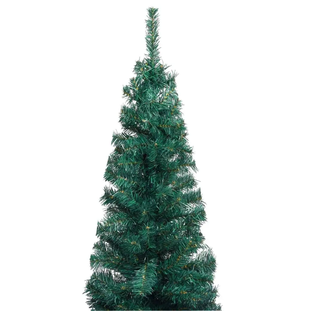 Vidaxl Slim Artificial Christmas Tree With Leds&ball Set Green 82.7" - 7 Foot - Green