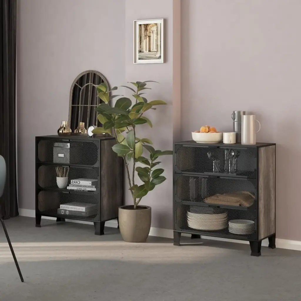 Upgrade your living space or office with this modern and functional storage cabinet, designed to keep your belongings organized and your room looking stylish. This cabinet is crafted from a combination of sturdy metal and engineered wood, offering both durability and a contemporary industrial look. Key Features • Modern industrial design with a rustic brown or gray finish • Sturdy engineered wood top and sides with robust metal mesh doors • Six spacious compartments for ample storage • Strong black metal legs for enhanced stability Versatile Storage Solution • Ideal for use as a file cabinet, storage cabinet, or accent piece in your living room, office, or hallway • Mesh-fronted doors provide ventilation and a unique visual appeal • Perfect for storing books, files, decorative items, or everyday essentials Available Options • Choose from two stylish colors: rustic brown or gray • Available in single or double quantity packs to suit your space and storage needs Enhance your home or office with this elegant storage cabinet, combining practical storage with a sleek, industrial-inspired design. Its versatile compartments and robust construction make it an excellent choice for organizing any room.