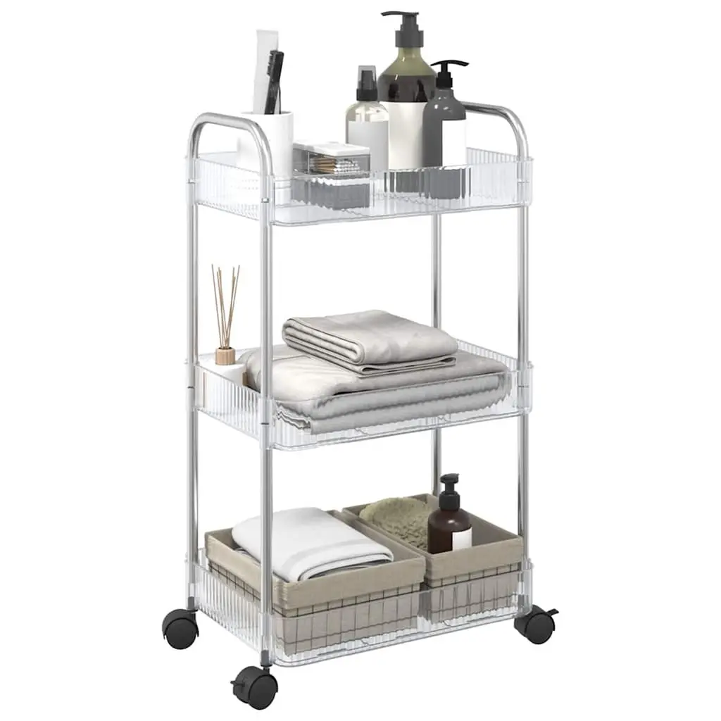 Vidaxl Storage Trolley 3-Tier Transparent 14.6x11.0x26.8" Acrylic