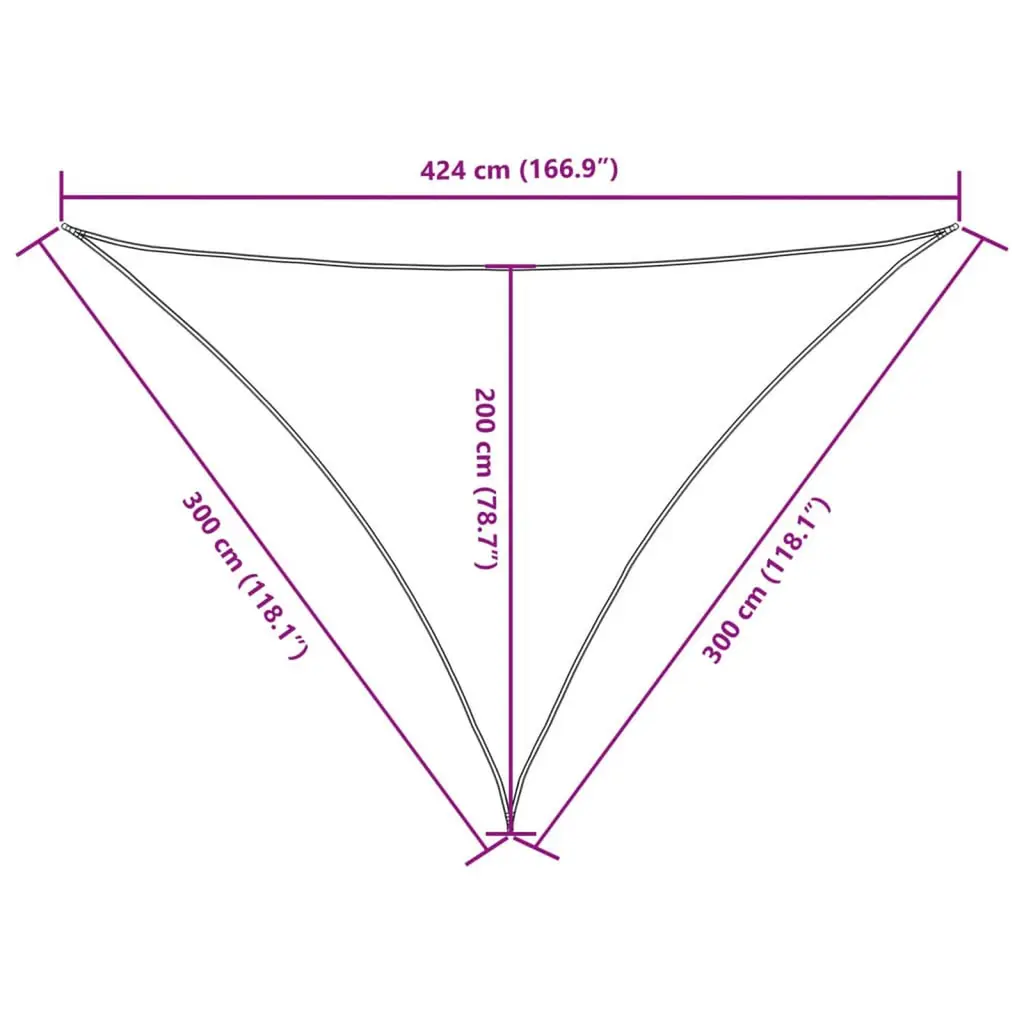 This triangle sunshade sail provides awesome outdoor comfort, designed to offer plenty of shade while sprucing up the look of your garden or patio. Measuring 9.8 x 9.8 x 13.9 feet, it’s ideal for keeping outdoor spaces protected from the blazing sun, making it a must-have for patios, balconies, or playgrounds, ensuring your family stays comfy on sunny days. UV Resistance: Crafted with top-quality, UV-resistant materials, this sunshade sail effectively shields you from harmful sun exposure, allowing you to enjoy your outdoor space safely.Waterproof Fabric: The waterproof PU-coated oxford fabric ensures dry and comfy gatherings, eliminating worries about unexpected rain, making your outdoor time more enjoyable.Modern Design: The trendy triangular shape adds a contemporary touch, fitting perfectly with any modern outdoor decor while providing excellent shade coverage.Versatile Use: Ideal for many different settings, this sunshade sail can be easily set up in gardens, balconies, or other outdoor spaces, offering flexibility in usage.Easy Installation: Everything you need—including stainless steel fasteners and ropes—is provided for hassle-free setup, making it easy for anyone looking to enhance their outdoor space.