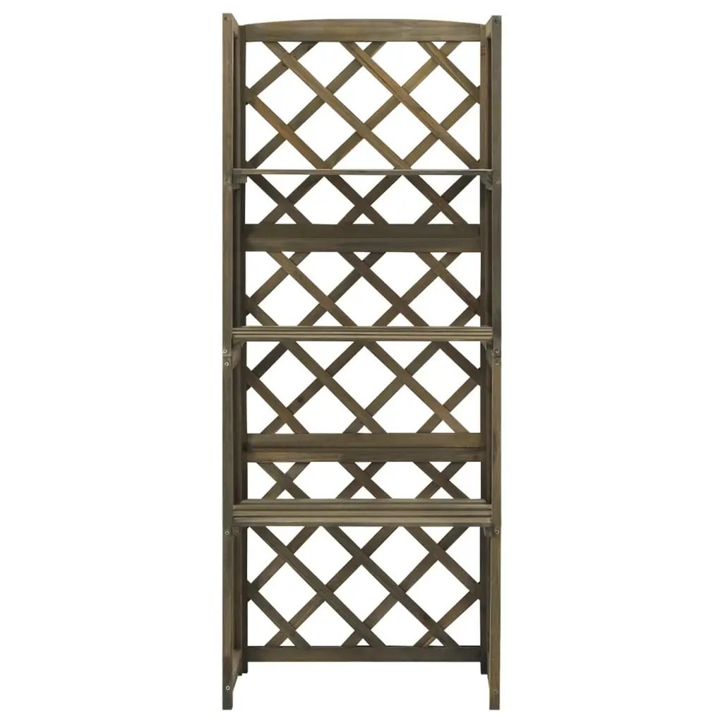 This gray wooden trellis with shelves isn't just a practical trellis; it's also a stylish plant stand that adds a pop of life to outdoor spaces. Perfect for balconies, gardens, or patios, its traditional style pairs beautifully with plants while providing solid support for climbing vines, making it a lovely focal point outside. Ample Storage: This trellis has tons of shelves for showcasing pots and other decor, elevating the look of your outdoor space. It’s ideal for arranging plants neatly to flaunt your gardening skills and creativity.Durable Material: Made from solid fir wood, this trellis can withstand any weather and season, keeping your investment safe and secure. The sturdy material supports various types and weights of plants while looking good.Elegant Design: The classic design, featuring decorative elements, adds a chic touch that catches the eye of both neighbors and guests. It complements a variety of gardens, enhancing the vibe of your outdoor area.Multi-Functional: Acts as both a trellis and a plant stand, meeting all your garden needs. Whether for climbing plants or pot displays, this trellis does it all, making it a practical addition to any outdoor space.Ideal Size: Measuring 21.7 inches wide, 11.8 inches long, and 55.1 inches high, the trellis is compact enough for snug spots but spacious enough for plenty of plants, making it great for anyone looking to spruce up their garden or balcony.