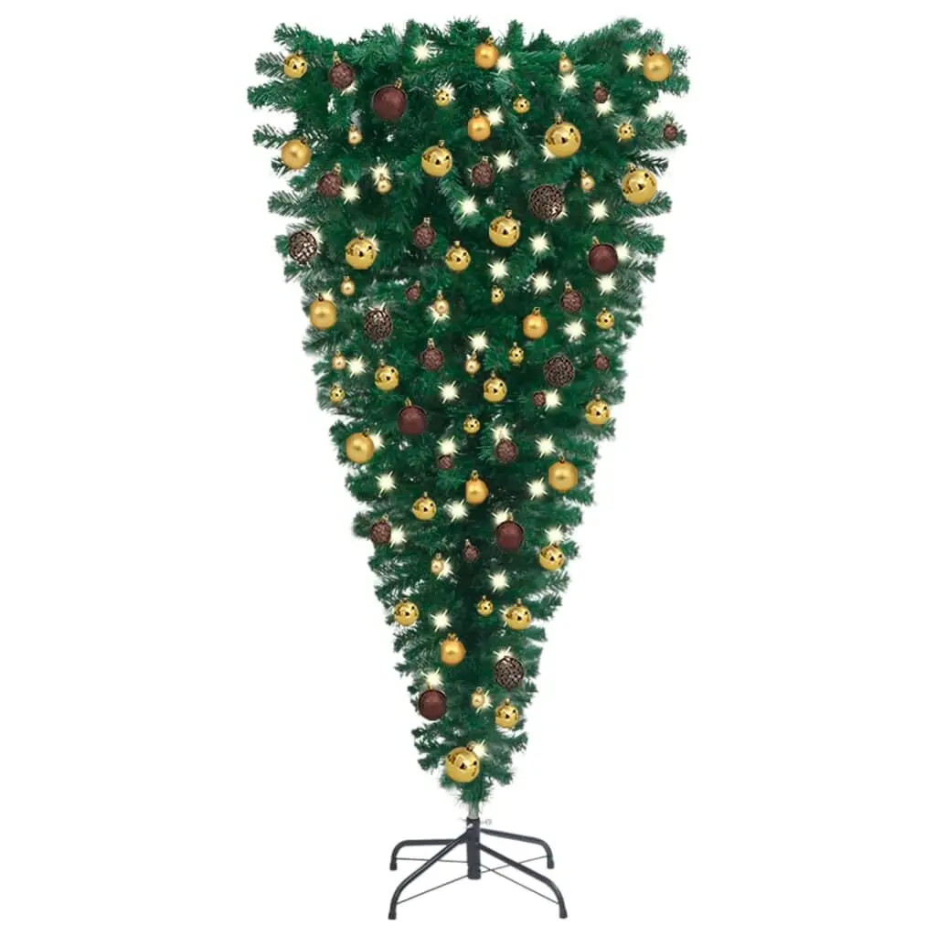 Vidaxl Upside-Down Artificial Christmas Tree With Leds&ball Set 82.7" - 7 Foot - Gold