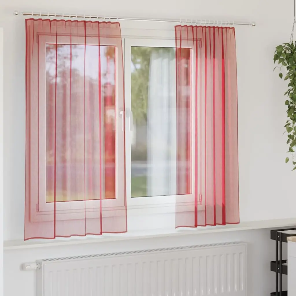 Vidaxl Voile Curtains With Rod Pockets 2 Pcs Wine Red