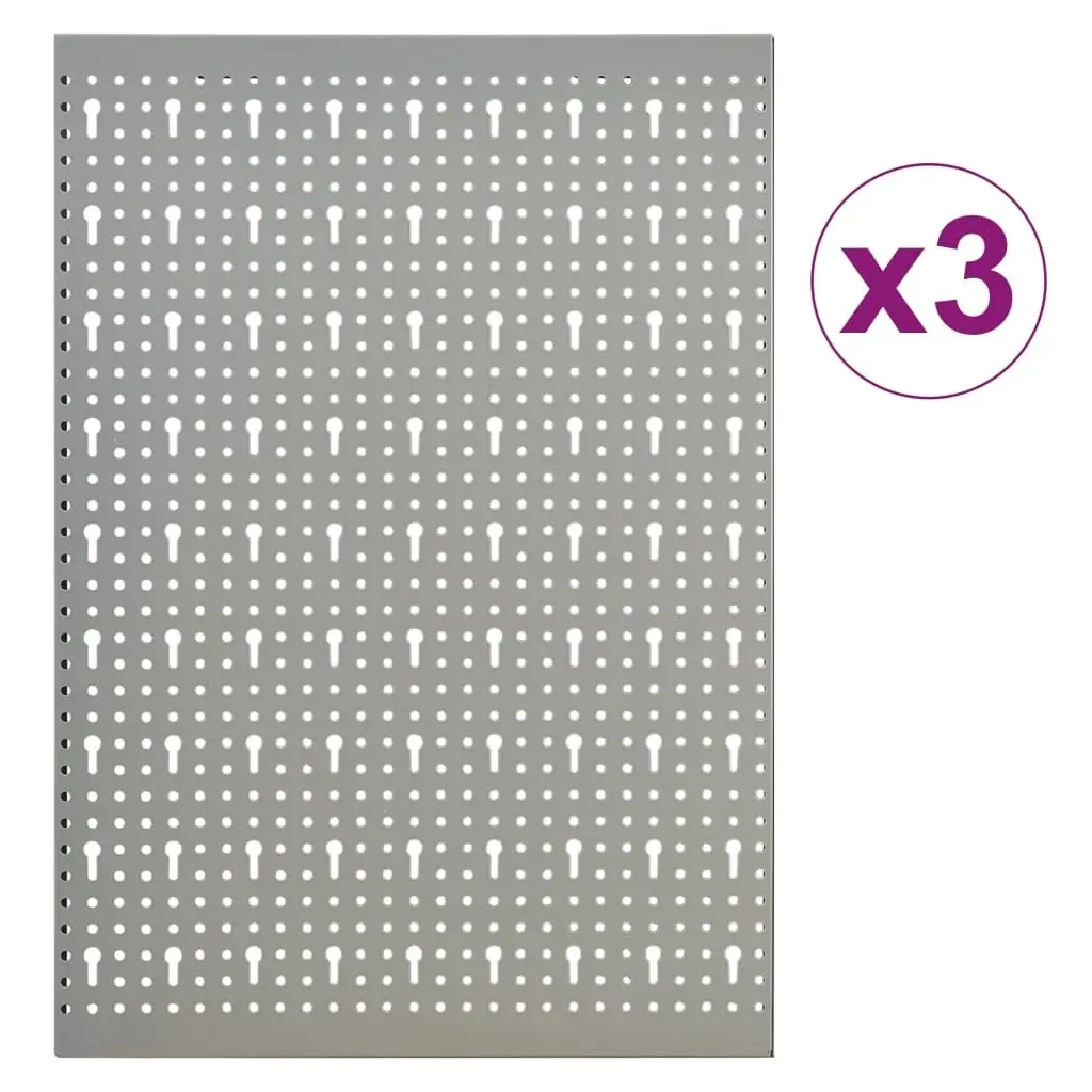 Vidaxl Wall-Mounted Peg Boards 3 Pcs 15.7"x22.8" Steel - Grey - Rack