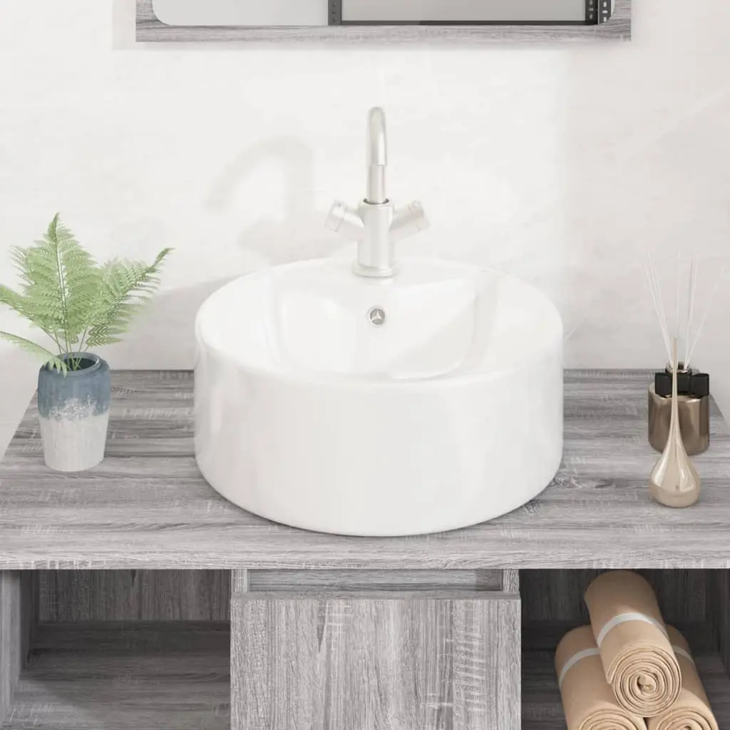 Vidaxl Wash Basin White 15.7"x5.7" Ceramic Round