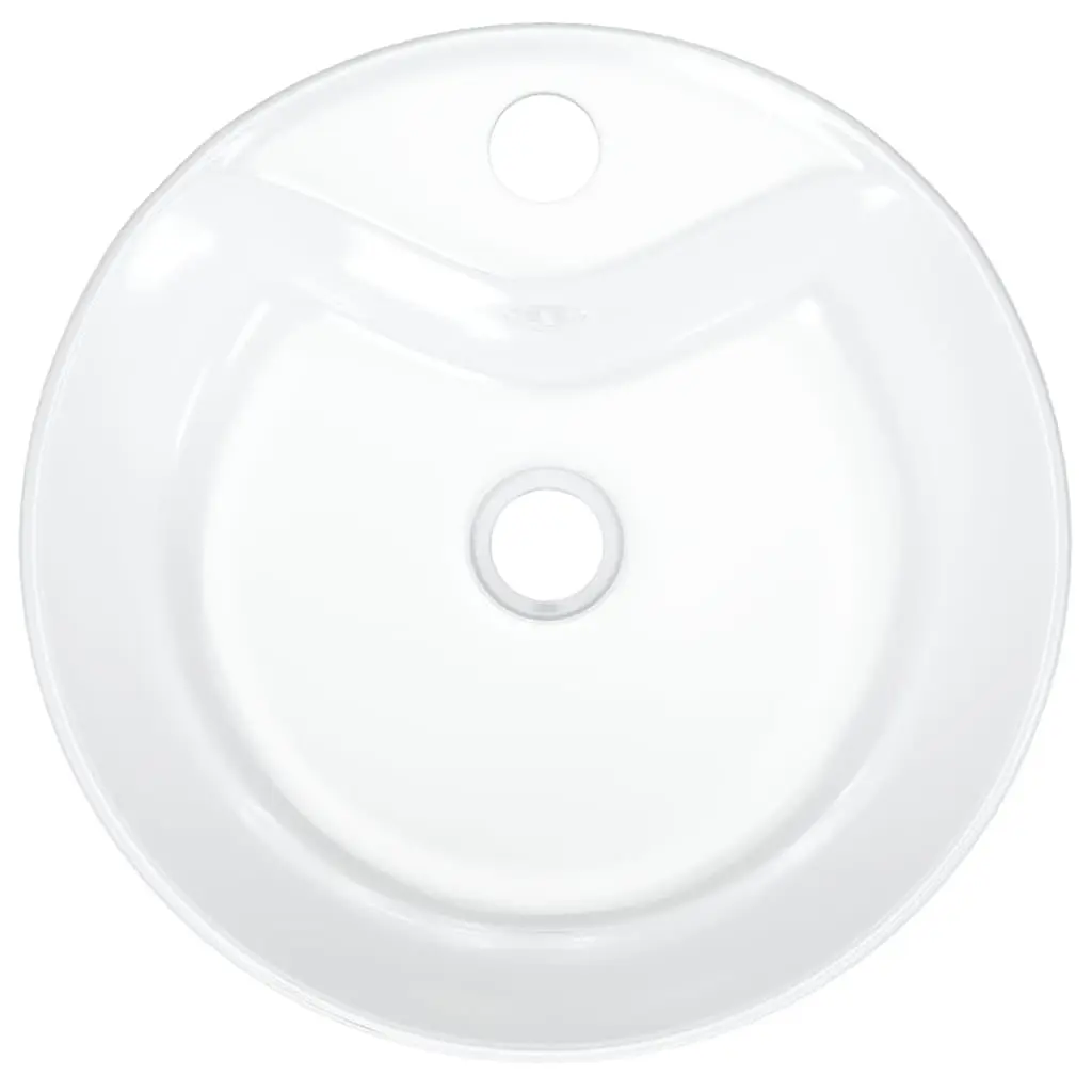 This wash basin, made of ceramic, makes a stylish and eye-catching addition to any bathroom, washroom or powder room.Durable material: The bathroom basin is made of smooth ceramic. Ceramic materials are tough and durable. This material is a long-lasting choice.Elegant style: The wash basin features a beautiful round shape, giving your bathroom a simplistic yet elegant style.High gloss finish: The high gloss finish adds a charming touch to this washroom basin and makes it easy to clean.Practical overflow: The sink basin is equipped with an overflow preventing option to allow the water out when it gets too full.Note:The tap and the drain are not included in the delivery.