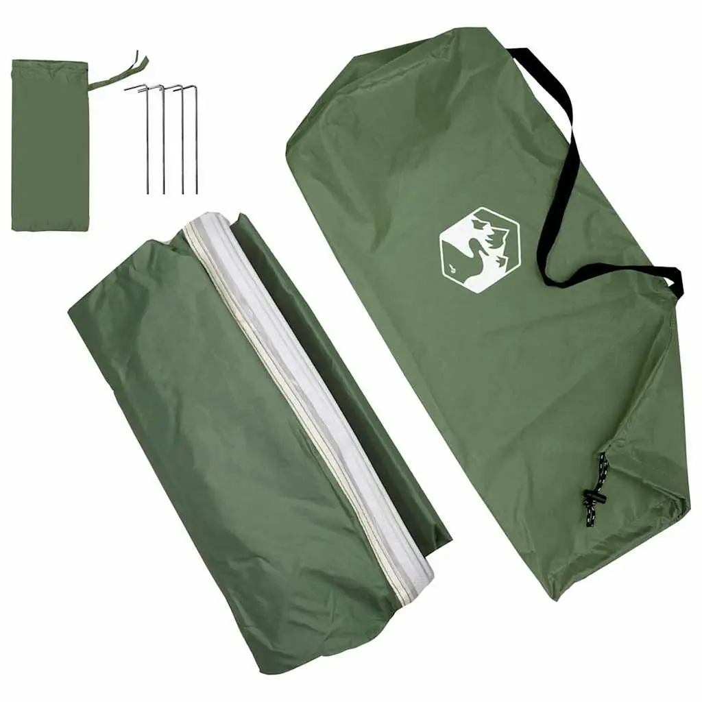 The Water Resistant Tarp is a must-have for outdoor enthusiasts. Designed with a simple style and attention to detail, this tarp is a versatile shelter solution for camping, hiking, or any outdoor trips. Its sturdy rectangular shape and matte finish help it blend right in with nature, making it perfect for all sorts of outdoor settings. It's light yet tough, so you can carry it and set it up easily, giving you comfort and practicality in any camping situation. Materials: Made from high-quality polyester and fibreglass reinforced plastic, this tarp is built to last and resist harsh weather. It's tough against elements, ensuring it stays strong and effective. The smooth surface, along with poly mesh and polyethylene, keeps it waterproof, so you're safe even when the rain surprises you. Included Components: This kit comes with all the must-haves—a 230 cm metal tube pole, a 700 cm guy rope, four pegs, and a carry bag. Each part is crafted for a specific purpose, helping to secure the tarp in any terrain. The metal pole provides sturdy support, while the guy ropes add extra tension against the wind, keeping it steady. Features / Function / Design: With flame-retardant qualities, the tarp minimizes risks when there's fire nearby. Its flexibility shines with its wind-resistant nature, making it a go-to shelter on windy days. Plus, it's all portable without sacrificing efficiency, emphasizing how easy it is to transport and set up for any outdoor fan. Recommended Uses: Perfect for camping seasons, this tarp fits right into outdoor setups, boosting your camping gear collection. Its reliable protection against changing weather makes it a must-have for camping and hiking, ensuring a solid shield for both recreational and survival situations. Care & Maintenance: Taking care of this tarp is a piece of cake. Just clean it with warm water to get rid of dirt and stains. Store it away from direct sunlight to keep it in shape, ensuring it’s ready for your next outdoor adventure.