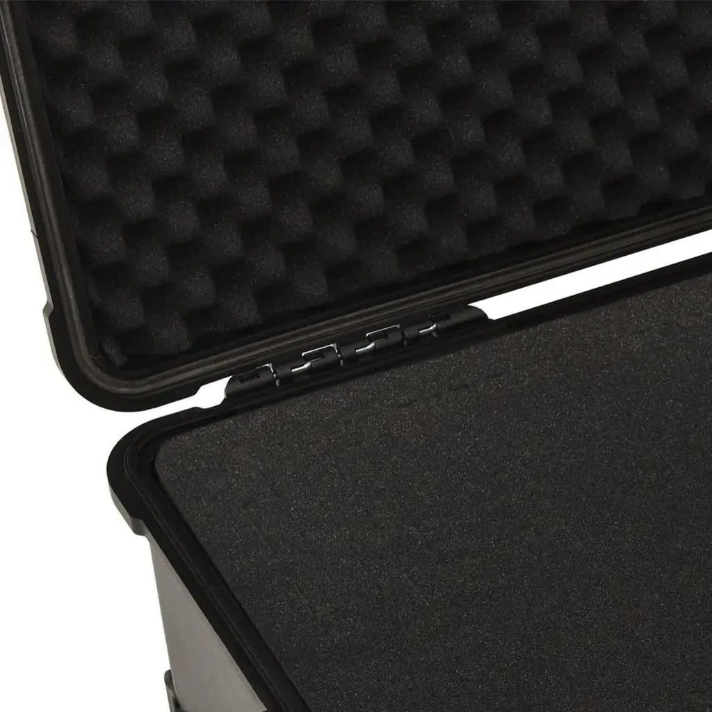 This handy flight case is a perfect combination of heavy-duty protection and easy transportation. It is ideal for travelling with your valuable items.Multiple protection: A tough outer shell allows shock resistance, while a strong seal creates water protection. The lockable function of the road case also adds extra safety.Portable design: Practical wheels and a retractable pull handle allow you to take the hard case more conveniently.Soft foam insert: The transport case comes with removable foam inserts to store your belongings snugly and safely.Pressure valve: The pressure valve can maintain the balance between internal and external pressures to help the toolbox adjust better at different elevation levels.Durable material: The flight case with foam is made of polypropylene and ABS, which makes it temperature proof. So, it offers a long service life.
