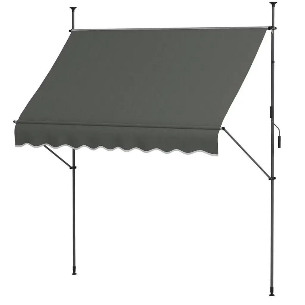 This manual retractable awning is a brilliant choice for outdoor shading, especially for patios and balconies. Its sleek anthracite color adds to the appeal of any outdoor space while also protecting you from harmful UV rays and light rain. UV Protection: This awning has a high UV rating with UPF 30+, protecting you from harsh sun rays, so you can enjoy your outdoor space longer and more safely.Manual Adjustability: It features a user-friendly manual adjustment system, with an easy hand crank for adding or retracting shade.Durable Material: Made from top-quality polyester with a PU coating, it's both water and UV resistant, built to last even in tough weather.Stylish Design: Its modern anthracite finish adds a classy touch to your outdoor space, blending well with different styles.Adjustable Size: With a width of 78.7 in and an extension of 47.2 in, it’s versatile enough for a range of outdoor settings.