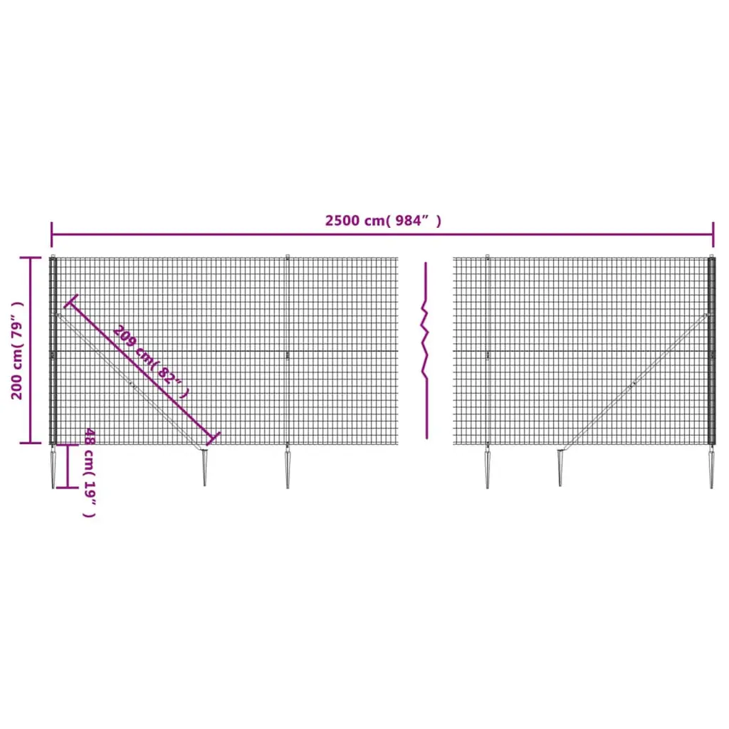 Vidaxl Wire Mesh Fence With Spike Anchors Green 6.6x82.0'
