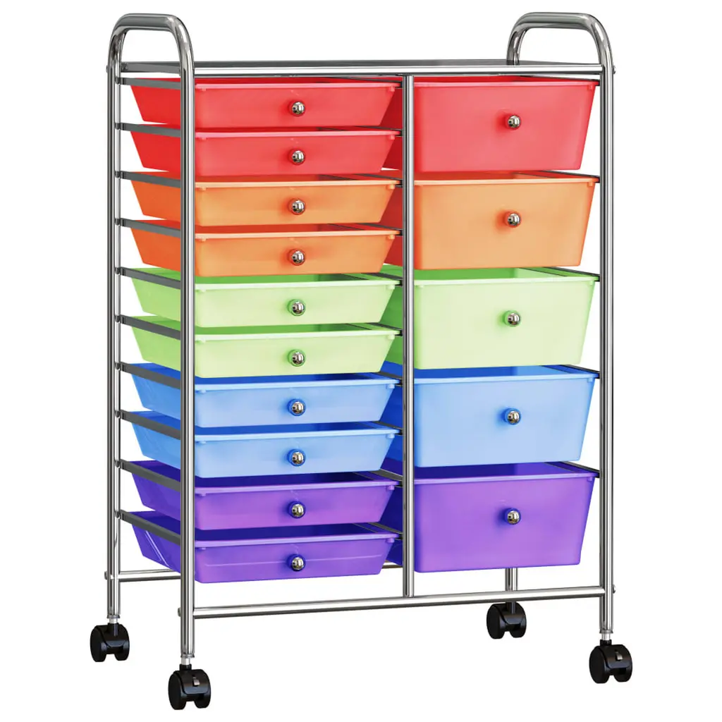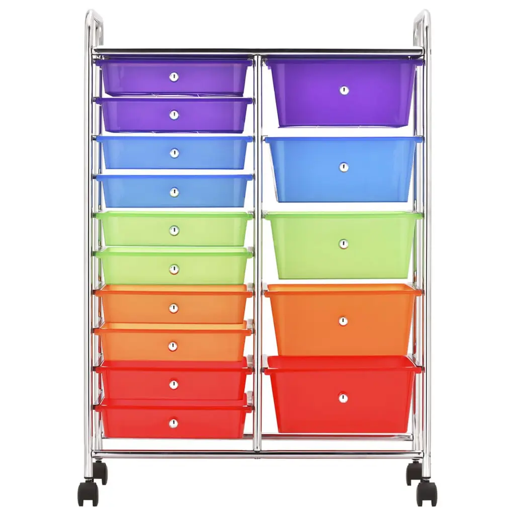 Vidaxl Xxl 15-Drawer Mobile Storage Trolley Multicolour Plastic
