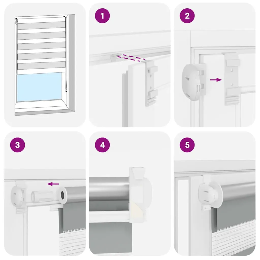 This elegant roller blind is a smart choice for the modern home, and can be a stylish alternative to traditional Venetian or vertical blinds.The blind has two alternating parallels of opaque and transparent fabric. By simply adjusting the position of the blind, one can choose to align the back and front opaque and transparent layers in such a way to create a unique light filtering effect suitable for any contemporary living space.The blind is made of 100% polyester. It comes with a white pull chain that is easy to install and operate.The width of the top rail including the mounting accessories will be 1.2" wider than the width of the blind.Delivery includes 1 x 31.5" top aluminum rail with 30.3" x 59.1" zebra print fabric, 1 x 31.5" top rail, 1 x 31.5" heavy bottom rail, 2 x pothook, 2 x bracket, 1 x chain holder, 2 x gasket and 1 x ball chain.WARNING: Young children can be strangled by loops in pull cords, chains, tapes and inner cords that operate the product. To avoid strangulation and entanglement, keep cords out of the reach of young children. Cords may become wrapped around a child's neck. Move beds, cots and furniture away from window covering cords. Do not tie cords together. Make sure cords do not twist and create a loop.