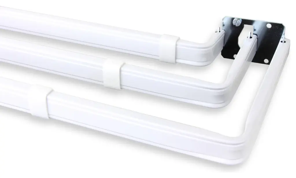 VIDGA Single track set - white. The fixture is easy to mount on the ceiling – only one screw is needed. Can be easily cut to the desired size. Includes: 2 ceiling fixtures, 1 single track rail (length, 55⅛"), 1 glider/hook package. Wall hardware and screws are not included. Max. load: 11 lbs.