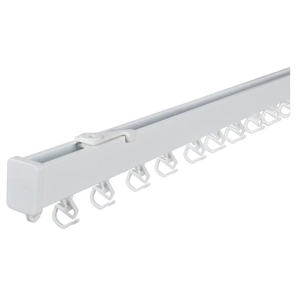 VIDGA Single track set - white. The fixture is easy to mount on the ceiling – only one screw is needed. Can be easily cut to the desired size. Includes: 2 ceiling fixtures, 1 single track rail (length, 55⅛"), 1 glider/hook package. Wall hardware and screws are not included. Max. load: 11 lbs.
