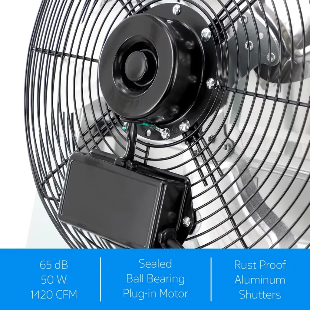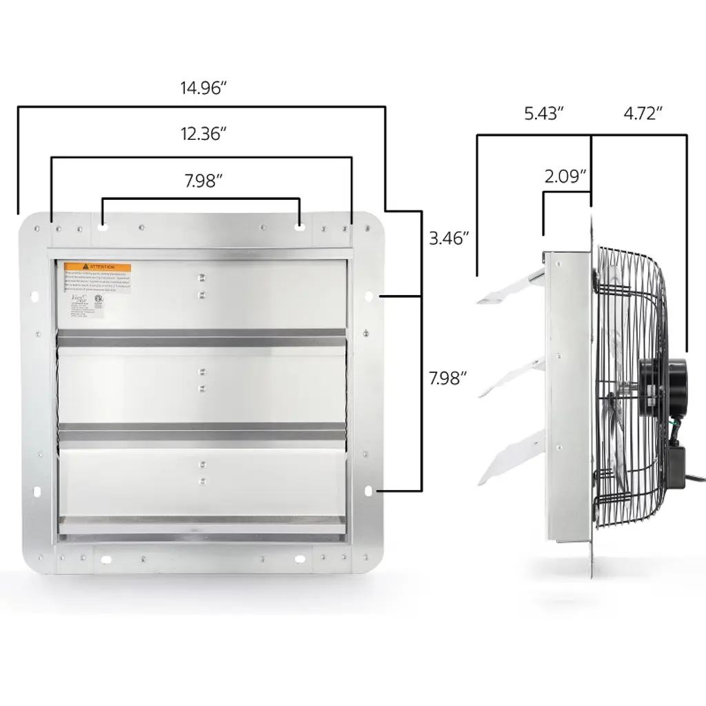 Move Heat, moisture, dust and odors from residential, commercial, industrial or agricultural spaces with the Vie Air 12 Inch Corded Shutter Exhaust Fan. Constructed from high grade aluminum to withstand wet and hot seasons, preventing rust and allowing the fan to function properly. Automatic shutters open and close while the fan is operating. Perfect for home, workshops, work rooms, factories, warehouses and greenhouses.